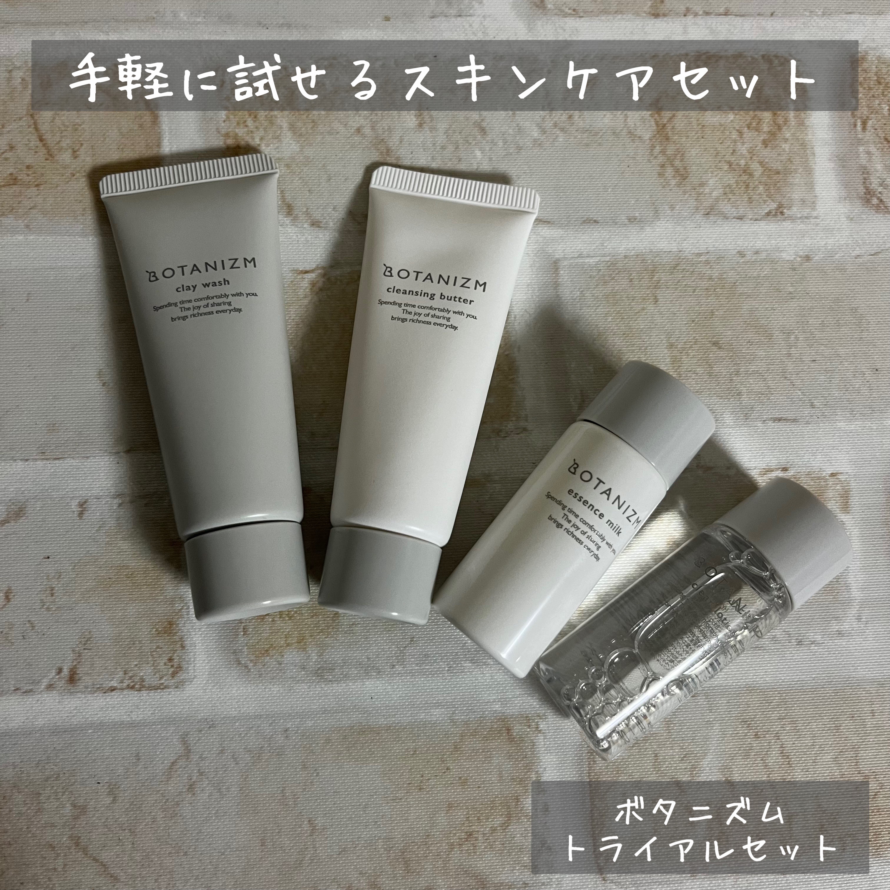 - BOTANIZMのスキンケアをお試しいただけるトライアルセットです。 【セット内容】 ・ボタニズム クレンジングバター20g ・ボタニズム クレイウォッシュ20g ・ボタニズム クリアローション20mL ・ボタニズム エッセンスミルク20mL