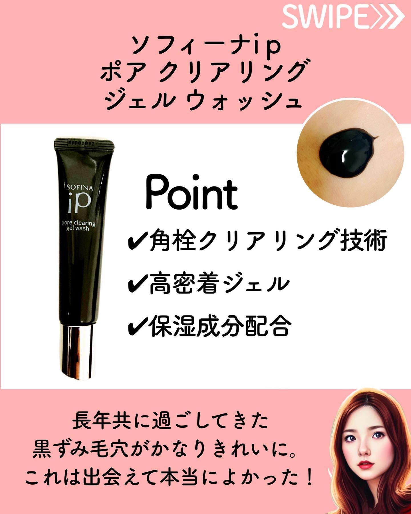 置き去り角栓を内側まで崩壊し洗浄✨毛穴スッキリ!✼••┈┈••✼••┈┈••✼••┈┈••✼••┈┈••✼【使った商品】SOFINAiPソフィーナiPポアクリアリングジェルウォッシュ30g¥1,980【商品の特徴】黒の直塗りジェルが、汚れが気...