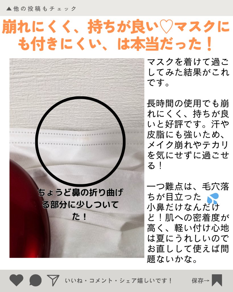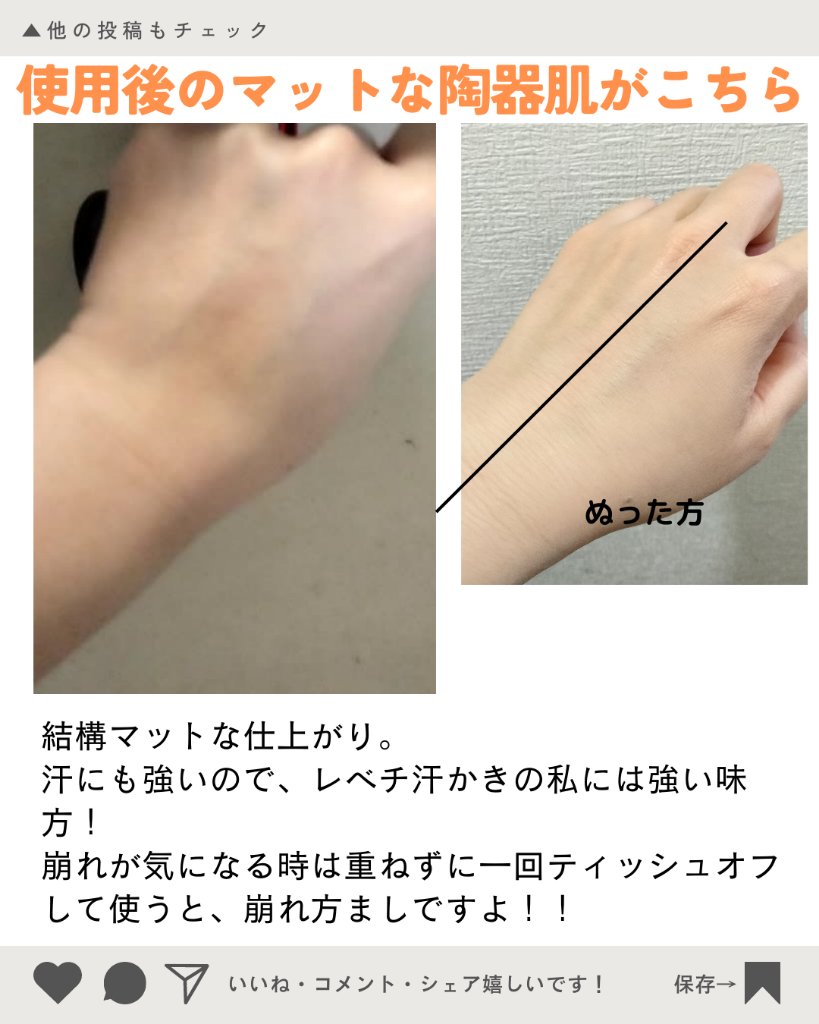 厚塗り感がないのにしっかり肌に密着して 崩れにくい!素肌感のある仕上がりが好みなので大満足💛 ナチュラルな仕上がりが好きな方に激推し! SPF25/PA++なので、下地でしっかりUV対策はした方がいいかもです
