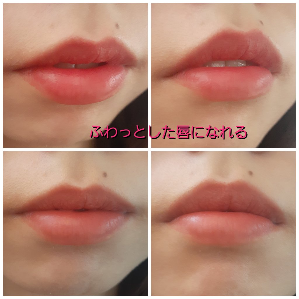- 柔らかくて滑らか ムースのように軽くてふんわりとした塗り心地 高発色なのに軽いテクスチャー しっかり発色だけどぼかしやすい、軽いテクスチャーで唇を包み込むように密着 長持ちで乾燥しにくい ふんわりしっとりなムース質感で乾燥しにくく、潤いをキープ