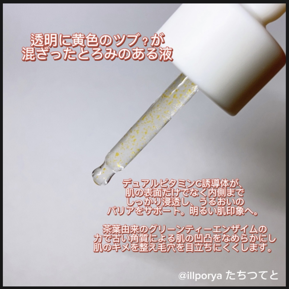 - 気になる肌のくすみ*1 ・毛穴に、ビタミンC *2 × 角質ケア でガラス玉のような輝くピュア肌*3 へ ①デュアルビタミンC 誘導体 *2 が、肌の表面だけでなく内側まで *4しっかり浸透し、うるおいバリアをサポート。 ②グリーンティーエンザイム*5 で古い角質をやさしく除去 ③5つのヒアルロン酸*6 配合でうるおいのあるみずみずしい肌へ ④べたつかずスーッとなじむメルティング感の塗り心地 ⑤低刺激処方*7 、無香料でどの肌タイプでも使いやすい *1古い角質による *2 テトラヘキシルデカン酸アスコルビル 整肌成分 、 3-O-エチルアスコルビン酸 整肌成分 ))*3 うるおいに満ちたなめらかな肌のこと *4 角質層まで *5 プロテアーゼ(整肌成分) *6 ヒアルロン酸、ヒアルロン酸 Na 、ヒアルロン酸クロスポリマーNa 、加水分解ヒアルロン酸、アセチルヒアルロン酸 Na *7 低刺激テスト済み 自社調べ