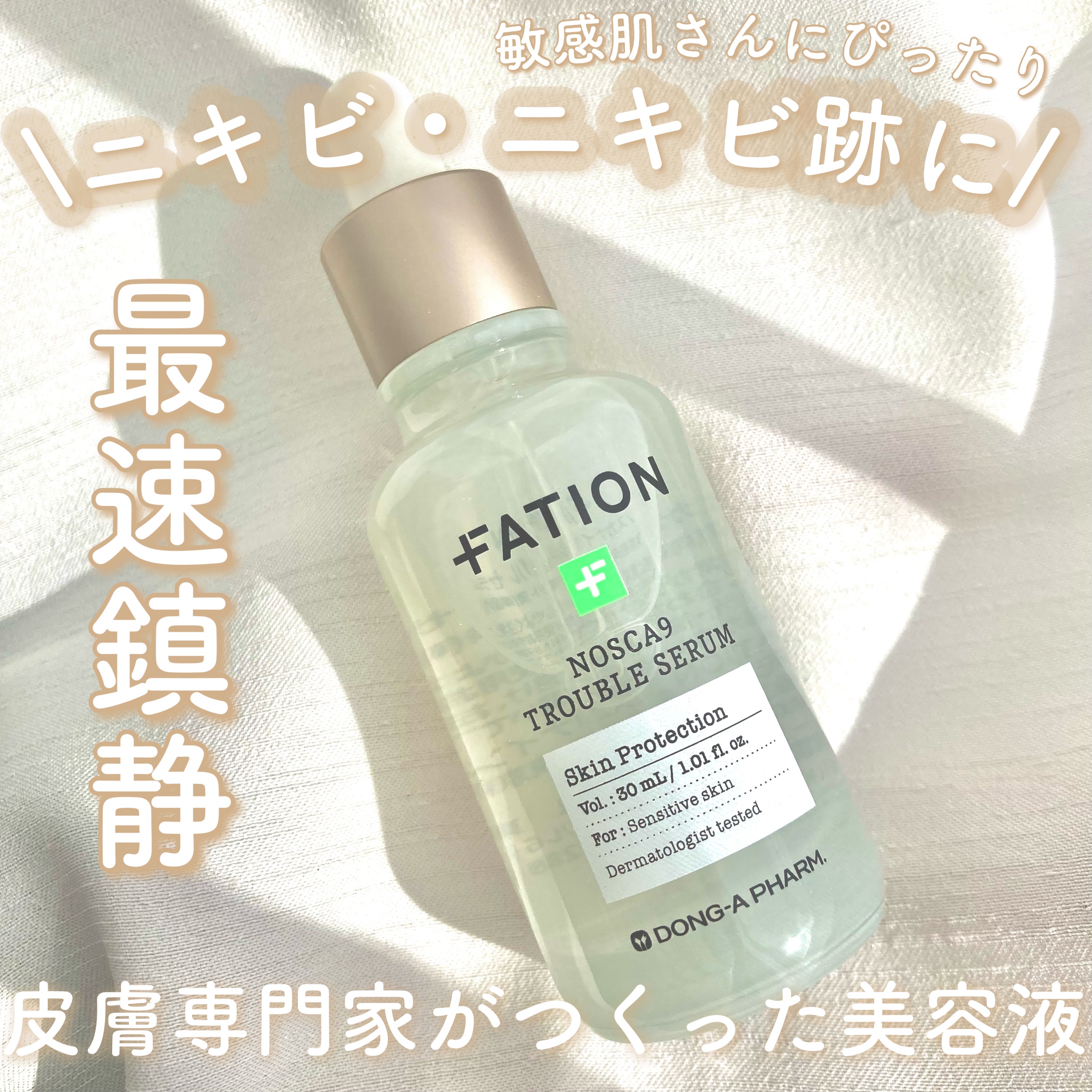トラブル肌の救世主✨ ✔️FATION パティオン ▪️ノスカナイントラブルセラム オリーブヤングスキンケア販売ランキング1位✨ 韓国を代表する東亜製薬から生まれたダーマコスメブランド、パティオン♡ 乾燥ツボクサではなく生ツボクサを使用していて乾燥しにくい👌肌荒れ予防もしながら潤いを作ってくれる!