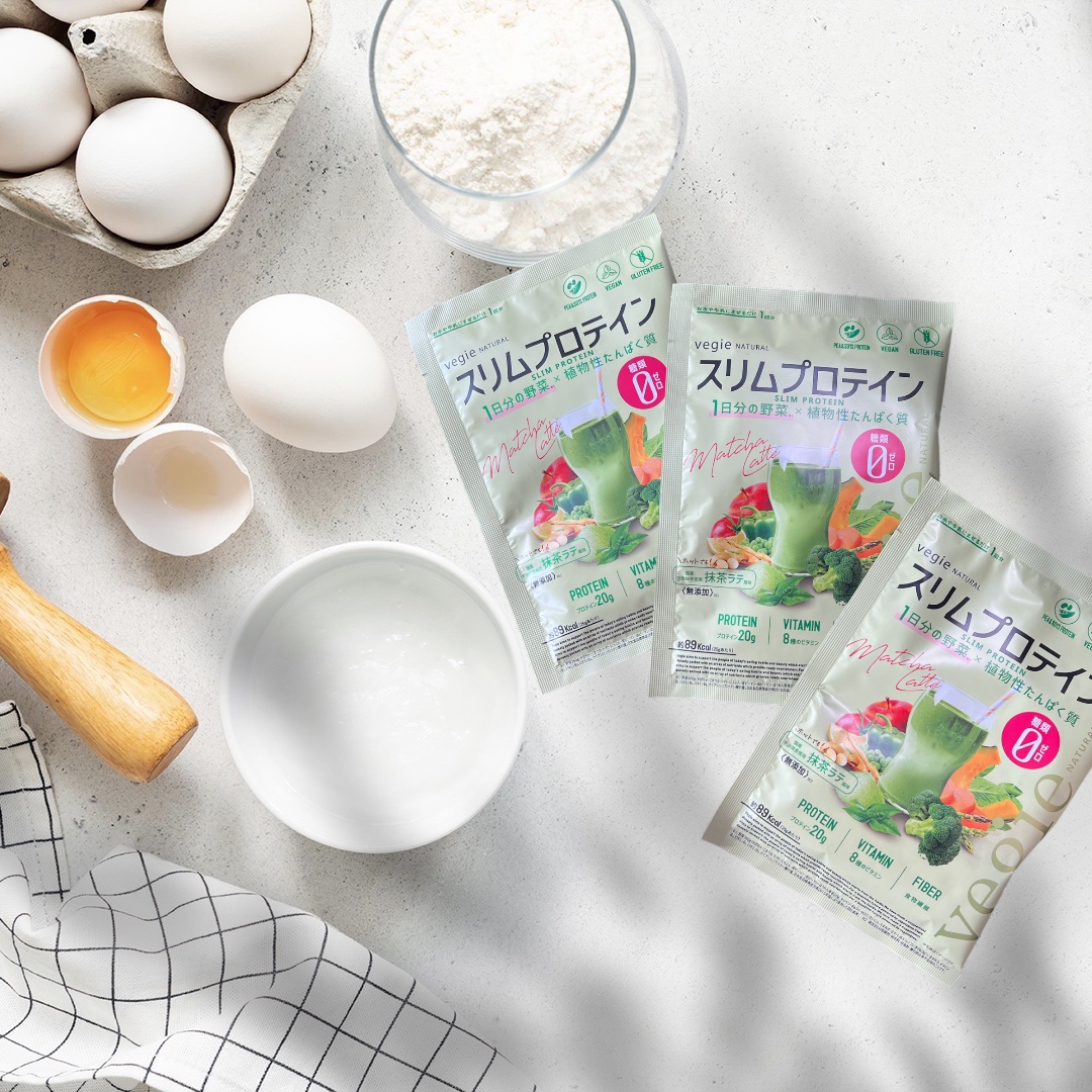 - ・糖質ゼロ!海外で話題のエンドウ豆由来プロテイン 「第3のプロテイン」として注目されているピー(エンドウ豆)プロテインに着目。乳・卵・大豆といったアレルギー物質を含んでいないため、植物性プロテインが主流の欧米ではソイに代わるプロテインとして人気が高まっています。また低GIでアミノ酸や鉄分・マグネシウムも豊富と言われていることから、近年話題となっています。 コップ1杯(25g)でたんぱく質20gを摂ることができ、しかも糖質はゼロ。糖質制限したい時やダイエット中の1食置き換えにおすすめです。量を調節することで、置き換えだけでなく食事サポートとしても。 ・添加物フリーだから安心!植物由来でベジタリアン・ヴィーガンでもOK より多くの人に安心して楽しんでもらえるよう、グルテンフリー・7大アレルゲンフリーにこだわりました。さらに人工甘味料・防腐剤・保存料・合成着色料・酸化防止剤も不使用。動物性原料も一切使用していないので、自然派な人はもちろんベジタリアンやヴィーガンの方にもおすすめです。 ・42種の野菜&8種のビタミン・食物繊維が1杯で! 普段の食事では摂りにくいケールやブロッコリー、人参など42種の野菜をギュッとパウダーに凝縮。さらに不足しがちなビタミンや食物繊維もたっぷり摂取できます。1杯で手軽に野菜不足もカバーしながらキレイとスッキリもサポート。 ・飲みやすい!2種類のフレーバーで飽きずに美味しい♪ 甘いフレーバーのプロテインが多い中、無糖&無添加ならではの素材を活かした、自然な風味にこだわりました。 飽きずに続けやすいよう、オランダ産カカオを使用した「ビターカカオ」と、宇治抹茶を使用した「グリーンティー」の2種類のフレーバーを厳選。粉末をお水や牛乳に溶かすだけで、手軽に美味しく続けられます。毎日忙しい現代女性のダイエットや栄養補給を効率よくサポートします。