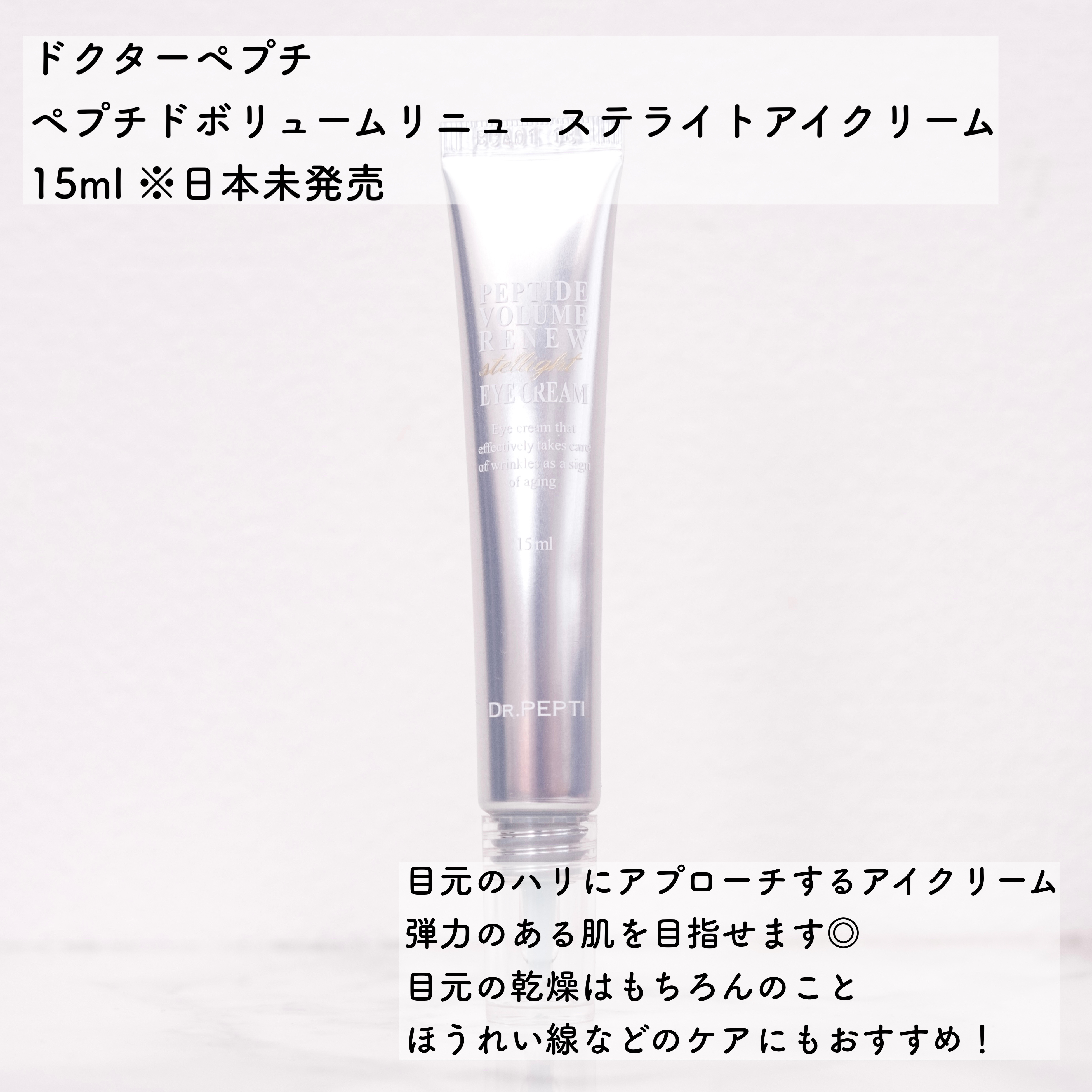 目元の乾燥小じわにペプチドON🫡🤍🤍 ドクターペプチのアイクリーム使ってみました 塗るボトックスと言われるアセチルヘキサペプチド-8や、ハリ、弾力に必要なペプチド、保湿力の高いヒアルロン酸が8種類、そしてシワ改善、メラニン予防をしてくれるナイアシンアミド配合で、目元をふっくらと明るい印象にしてくれます 翌朝からハリ感を感じられたし、しかもお値段2,000円以下!! 即リピート確定しました
