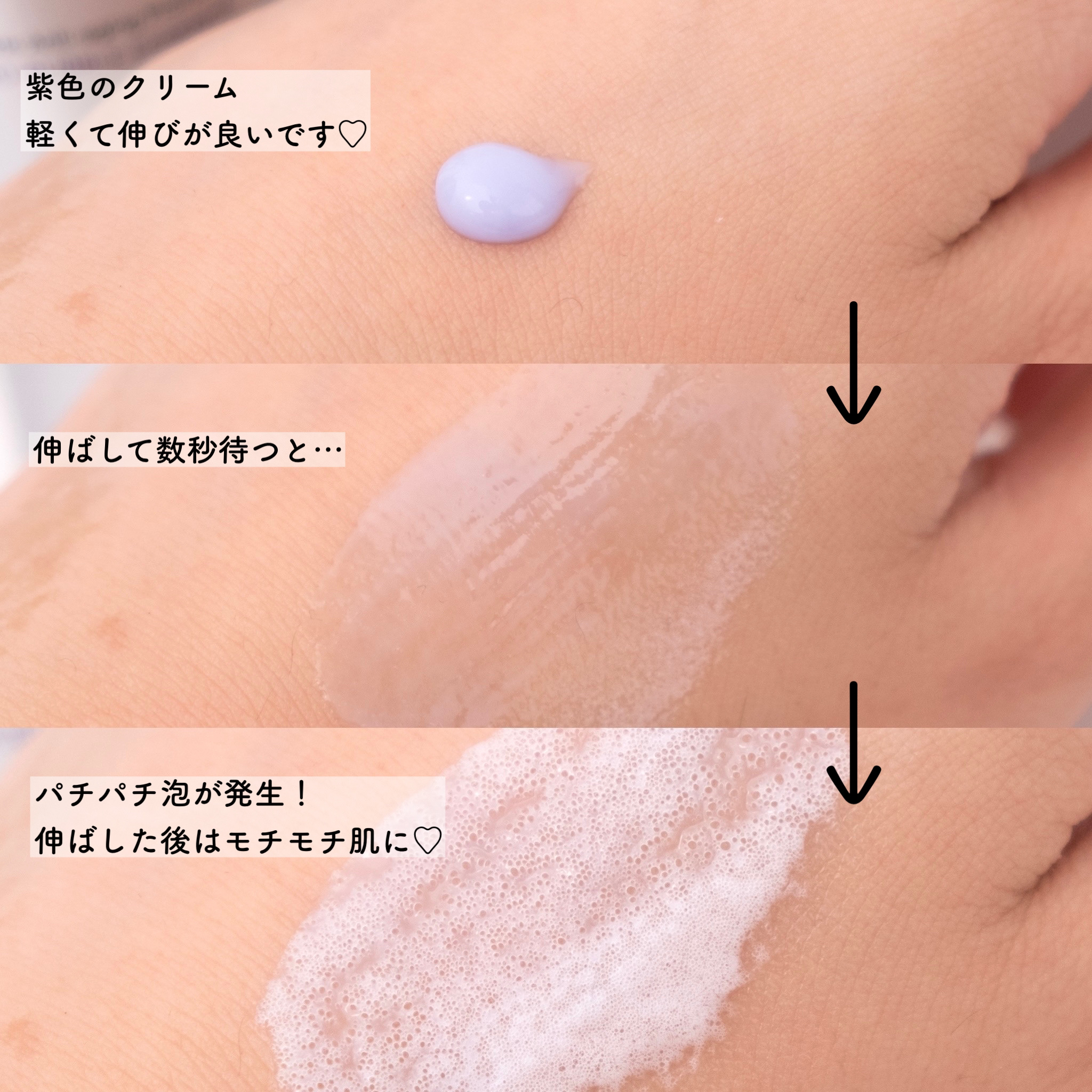 | なめらかなクリームのようなテクスチャーですが、 塗り広げて少しすると泡が立つ不思議な使用感! | 詳細を見る |