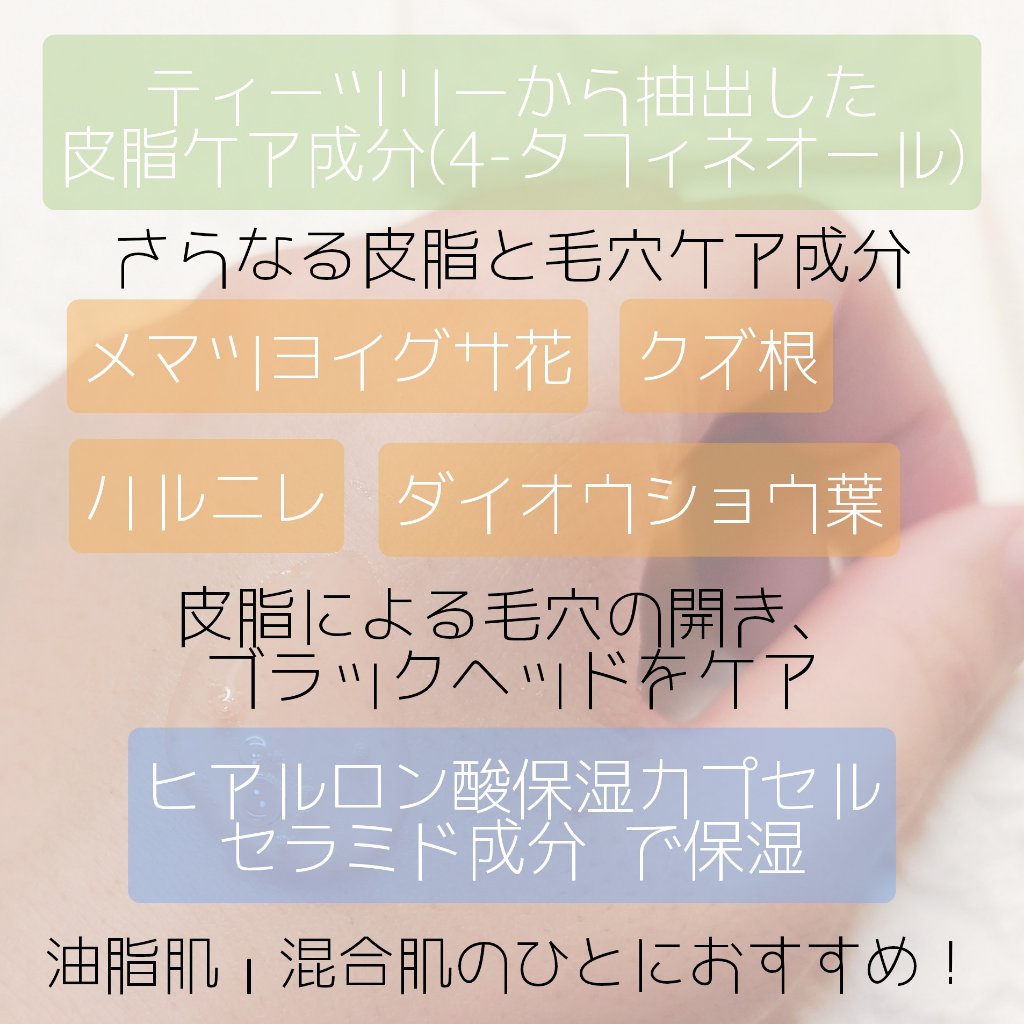 | すこしとろみのあるテクスチャーで、伸び肌馴染み共に◎べとつかないけどしっとり保湿してくれます! | 詳細を見る | ||
