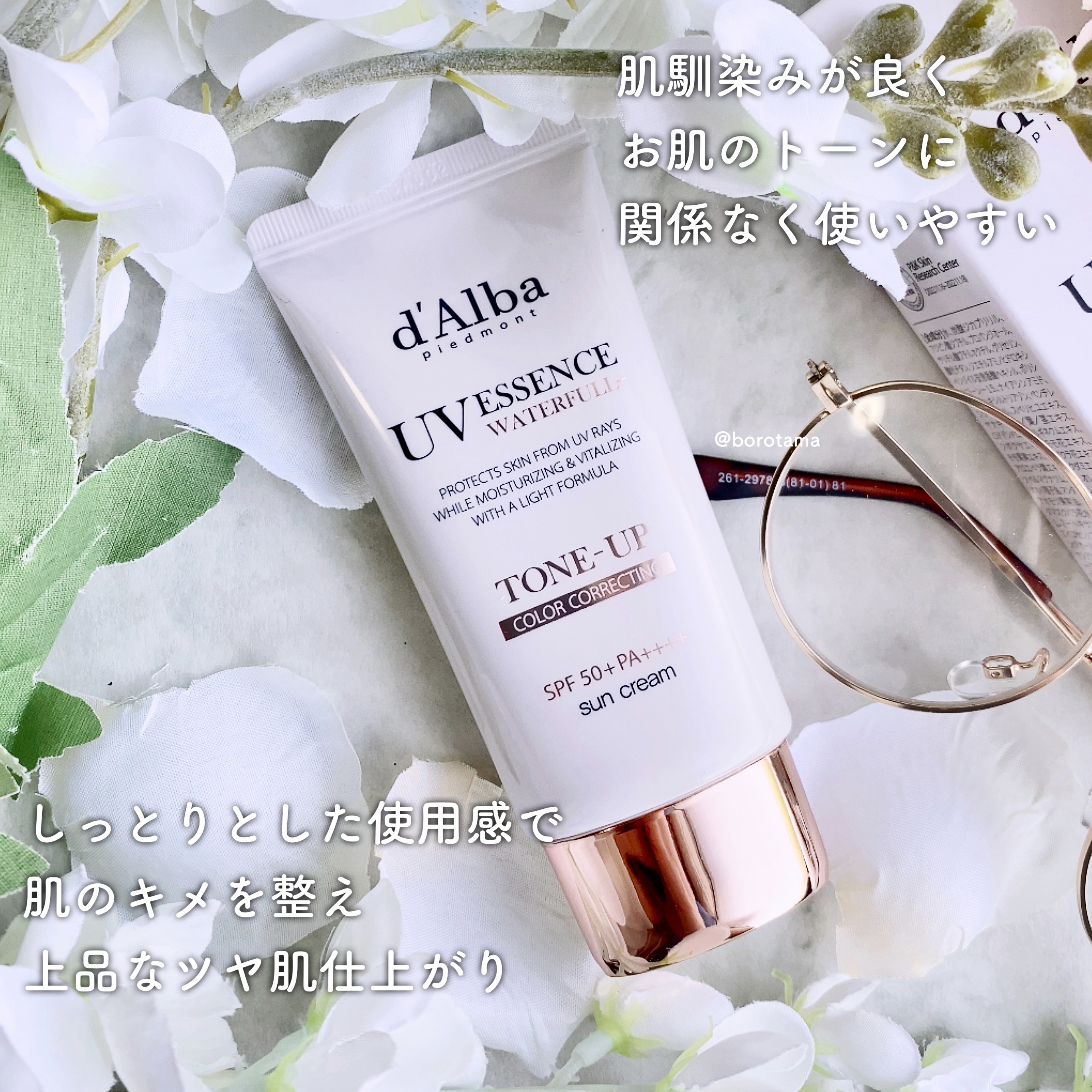 💜透明感のある肌へ💜●d'Alba●ウォータフルトーンアップサンクリームパープル ○商品説明○SPF50+・PA++++日焼けによるしみ、そばかすを防ぎ、水のようななめらかな使用感で肌色をより明るくする化粧下地です✨日焼け止めとしても使用...