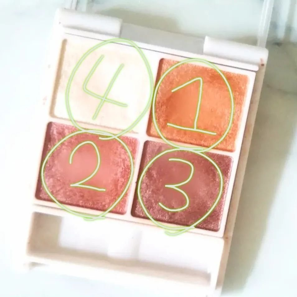 このニュアンスオンアイシャドウシリーズの中でも… キャメルブラウン04がいちばんお気に入りです😁 しかも、このキャメルブラウンは… 左側の3色を使うとオレンジメイクが作れて 右側の3色を使うとピンクブラウンメイクが出来るので とてもおしゃれで素敵なアイカラーだと思います😳 まだまだ下手メイクなので今後もたくさん 練習していきたいと思います😇