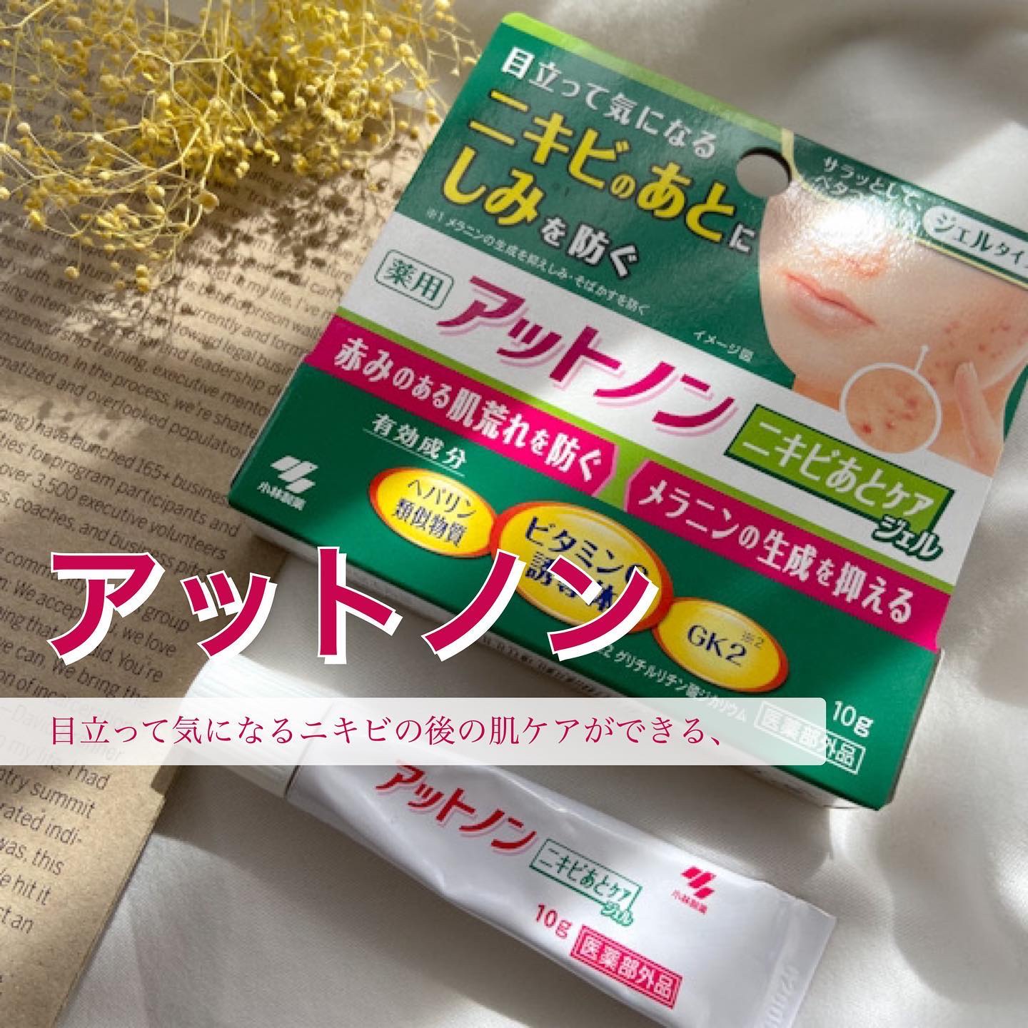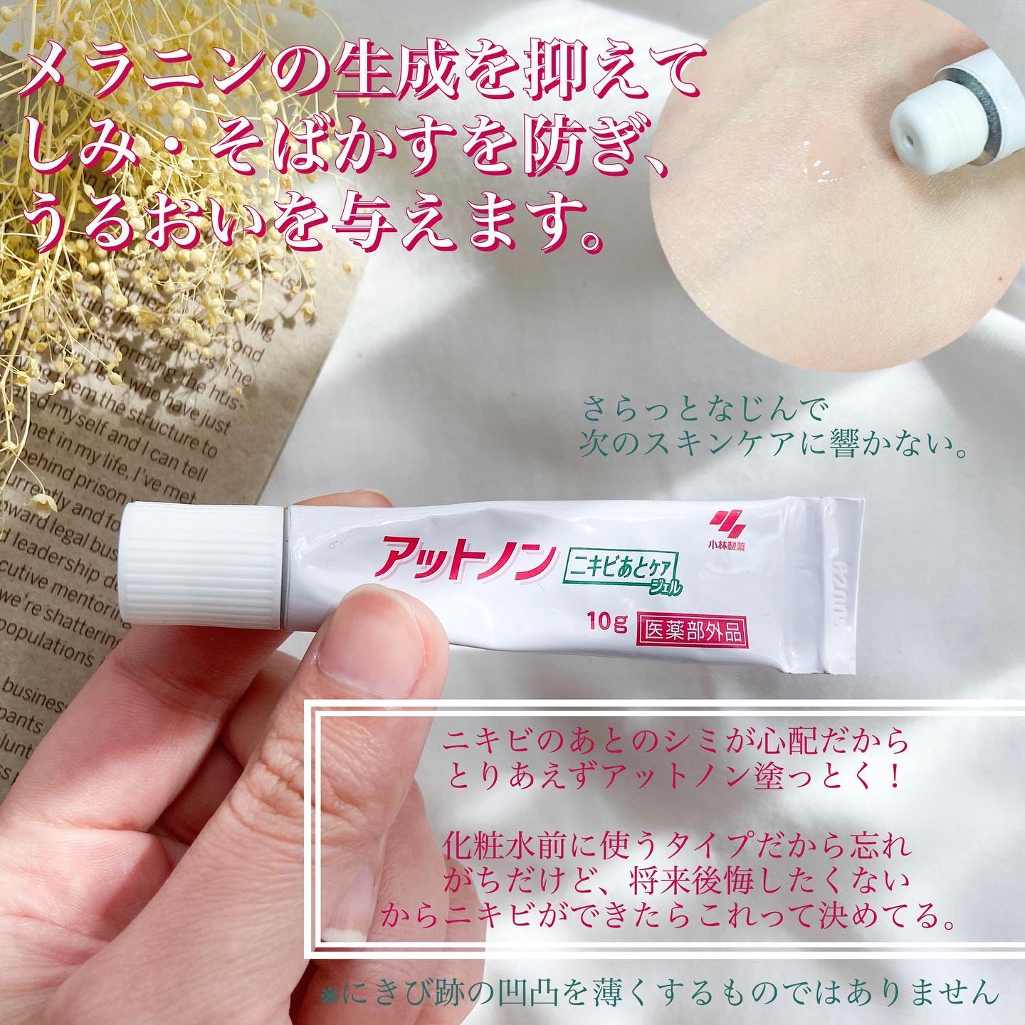 \ニキビのあとケア、コレ使って♡/ニキビのあとは、刺激などの炎症によりメラニンの生成が促されてしみになりやすいの🥲そうなる前にコレがオススメ!♡小林製薬アットノンニキビあとケアジェル(医薬部外品)スキンケアの最後ではなく洗顔後、スキンケア前に...