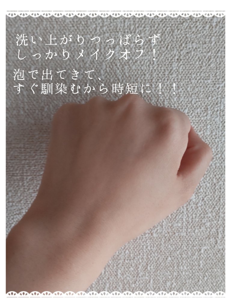 肌をこすらずにメイクを落とせる♪ 泡で出てくるメイク落としで、肌を包み込むようにハンドプレスしてメイクを溶かすようにして使用します。 ダブル洗顔不要なのは嬉しい!メイク落としとしてだけでなく強めの洗顔料として使うことも可能です。 肌のバリア機能をこわさないよう優しく洗えるこうしたアイテムを手頃な価格で、どこでも買えるのが嬉しいです。
