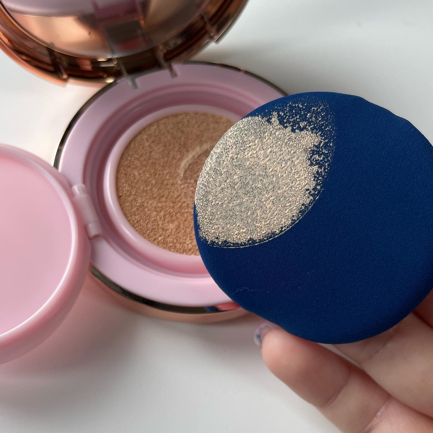 混合肌や敏感肌におすすめのピンクティーツリーカバープライマークッション カラーは『21号』を使用しました! SPF50+ PA++++の高UVカットのクッションファンデーション うるおい感がありながら、ピタッと肌に密着してくれるテクスチャ
