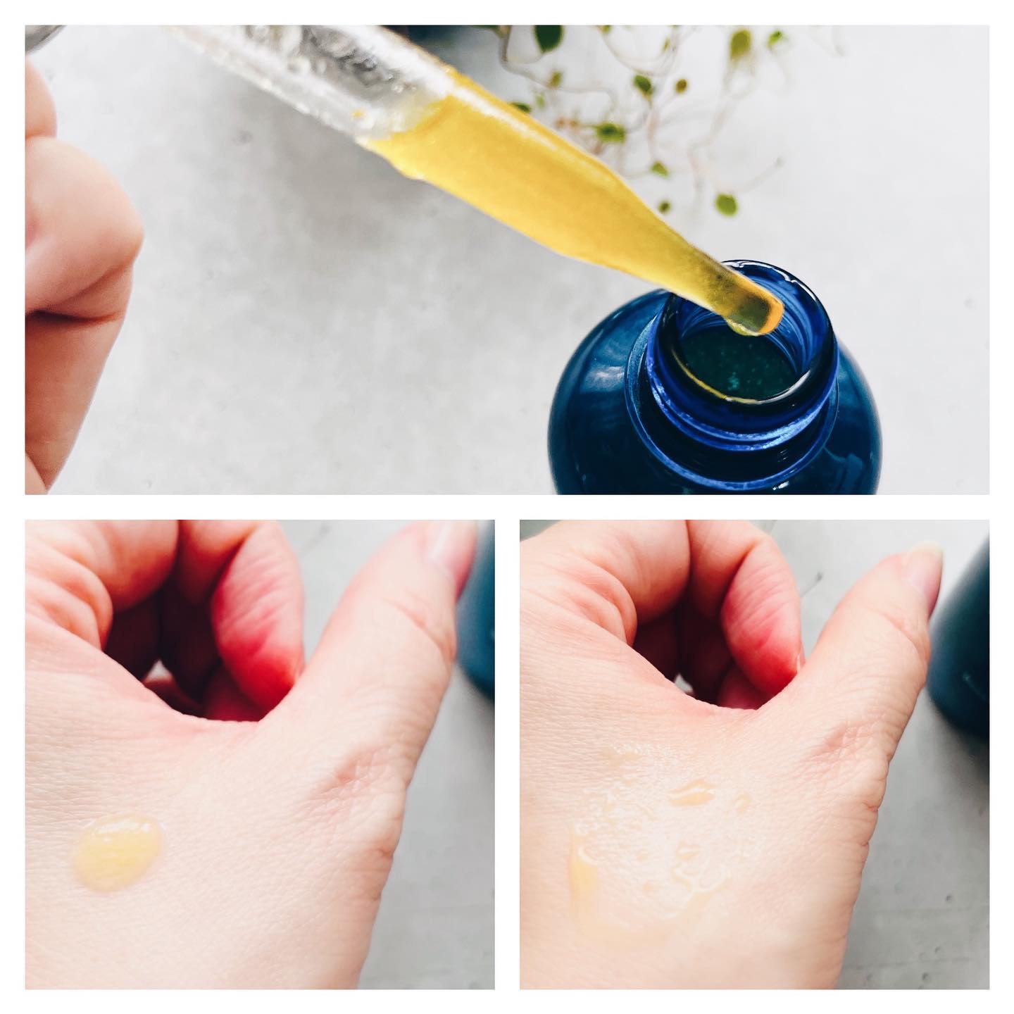 なめらかなウォーター層と、リッチなオイル層の2層を振り混ぜて使う美容液。 ウォーター層には 5-ALA を、オイル層には天然のマカダミアナッツオイルを配合。 乾燥による小じわを目立たなくする効能評価済。 ベタつきなく軽くツヤのある柔らかな肌に仕上がりました。 肌が黄色くなる事もありませんでした。