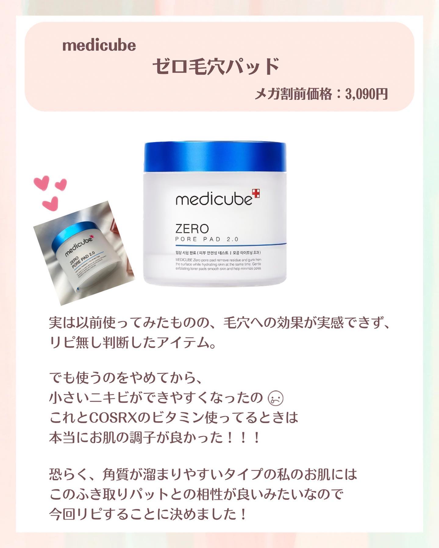 MEDICUBE ゼロ毛穴パッド 2.0 | 2,200円 |