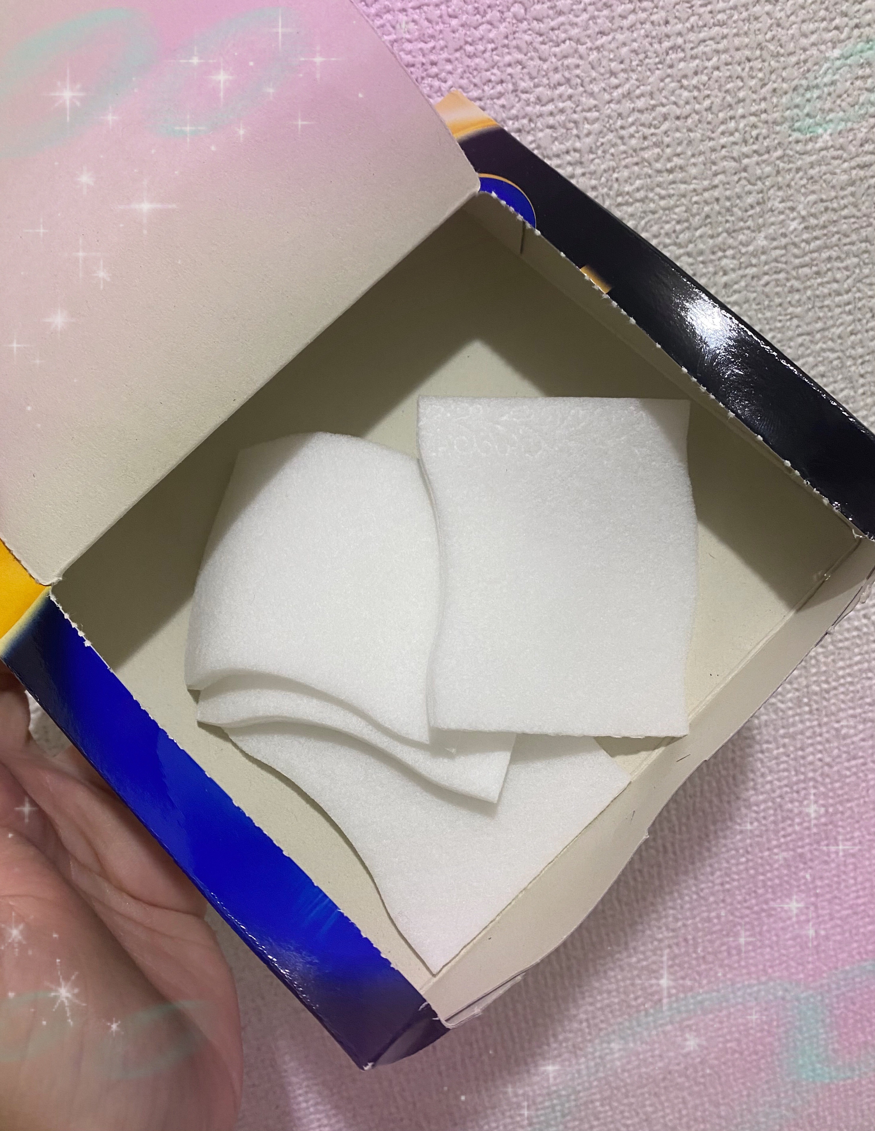 1/2の化粧水で潤うというのに惹かれて購入してみました!! スポンジ素材だから、毛羽立たないで使いやすかったです💕 このコットンは200円台で買えるからコスパも◎ 40シート入だけど1つが2枚に切り取れるから、私は1枚ずつ切り取って使用してます!!