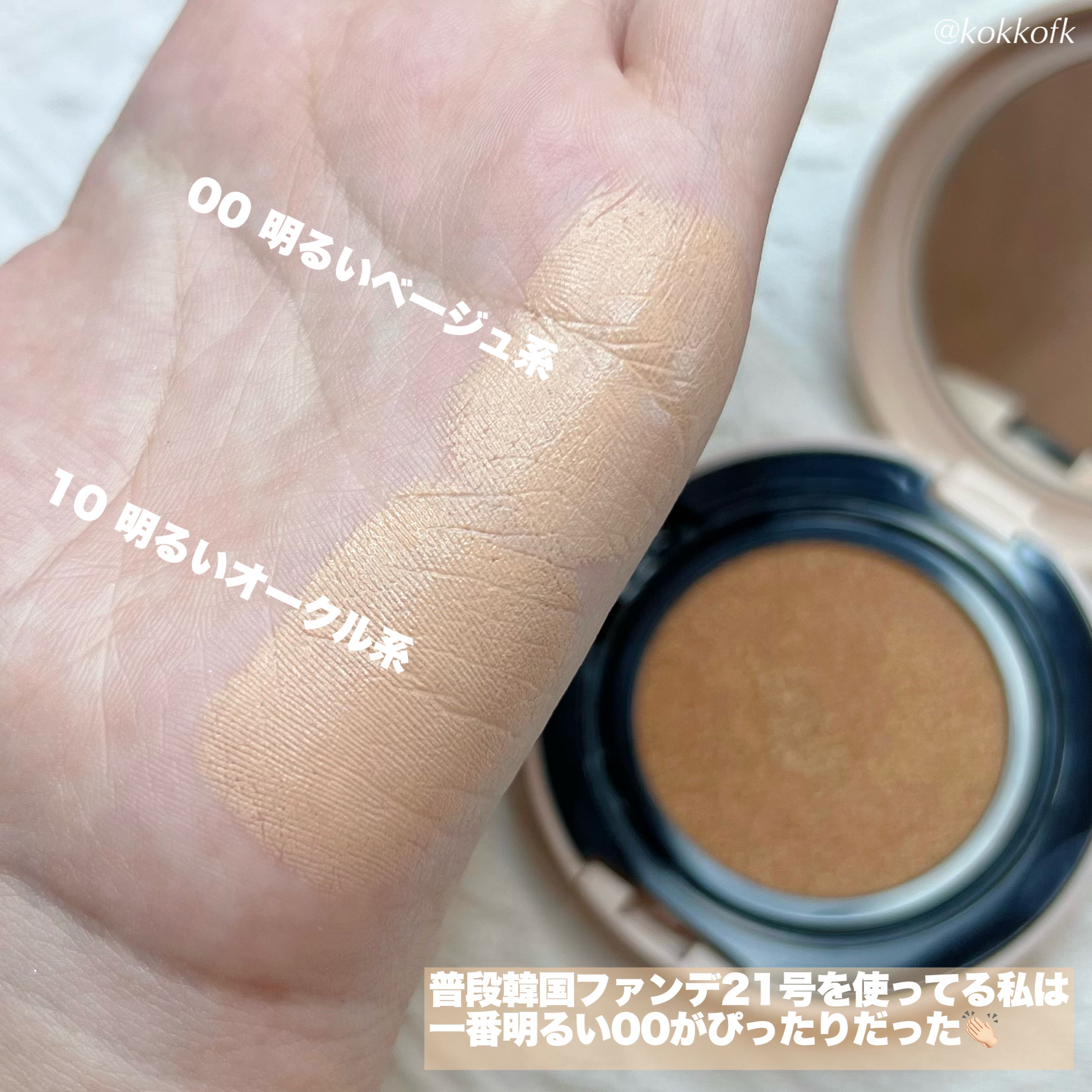 - <00 明るいベージュ系> 水、ジフェニルシロキシフェニルトリメチコン、ジエチルヘキサン酸ネオペンチルグリコール、シクロペンタシロキサン、グリセリン、DPG、PEG-9ポリジメチルシロキシエチルジメチコン、BG、ペンチレングリコール、ダイマージリノール酸ダイマージリノレイル、ラウリルPEG-9ポリジメチルシロキシエチルジメチコン、(アクリレーツ/ジメチコン)コポリマー、ジイソステアリン酸ポリグリセリル-2、ジステアルジモニウムヘクトライト、フェノキシエタノール、クエン酸Na、塩化Na、(ジメチコン/フェニルビニルジメチコン)クロスポリマー、ジメチコン、ステアリン酸、水酸化Al、トコフェロール、(ビニルジメチコン/メチコンシルセスキオキサン)クロスポリマー、アルミナ、グリシン、ジフェニルジメチコン、スクワラン、セラミドNP、ベルガモット果実エキス、ヒアルロン酸Na、アーチチョーク葉エキス、酸化チタン、酸化鉄、マイカ <10 明るいオークル系> 水、ジフェニルシロキシフェニルトリメチコン、ジエチルヘキサン酸ネオペンチルグリコール、シクロペンタシロキサン、グリセリン、DPG、PEG-9ポリジメチルシロキシエチルジメチコン、BG、ペンチレングリコール、ダイマージリノール酸ダイマージリノレイル、ラウリルPEG-9ポリジメチルシロキシエチルジメチコン、(アクリレーツ/ジメチコン)コポリマー、ジイソステアリン酸ポリグリセリル-2、ジステアルジモニウムヘクトライト、フェノキシエタノール、クエン酸Na、塩化Na、(ジメチコン/フェニルビニルジメチコン)クロスポリマー、ジメチコン、ステアリン酸、水酸化Al、トコフェロール、(ビニルジメチコン/メチコンシルセスキオキサン)クロスポリマー、アルミナ、グリシン、ジフェニルジメチコン、スクワラン、セラミドNP、ベルガモット果実エキス、ヒアルロン酸Na、アーチチョーク葉エキス、酸化チタン、酸化鉄、マイカ <20 自然なオークル系> 水、ジフェニルシロキシフェニルトリメチコン、ジエチルヘキサン酸ネオペンチルグリコール、シクロペンタシロキサン、グリセリン、DPG、PEG-9ポリジメチルシロキシエチルジメチコン、BG、ペンチレングリコール、ダイマージリノール酸ダイマージリノレイル、ラウリルPEG-9ポリジメチルシロキシエチルジメチコン、(アクリレーツ/ジメチコン)コポリマー、ジイソステアリン酸ポリグリセリル-2、ジステアルジモニウムヘクトライト、フェノキシエタノール、クエン酸Na、塩化Na、(ジメチコン/フェニルビニルジメチコン)クロスポリマー、ジメチコン、ステアリン酸、水酸化Al、トコフェロール、(ビニルジメチコン/メチコンシルセスキオキサン)クロスポリマー、アルミナ、グリシン、ジフェニルジメチコン、スクワラン、セラミドNP、ベルガモット果実エキス、ヒアルロン酸Na、アーチチョーク葉エキス、酸化チタン、酸化鉄、マイカ