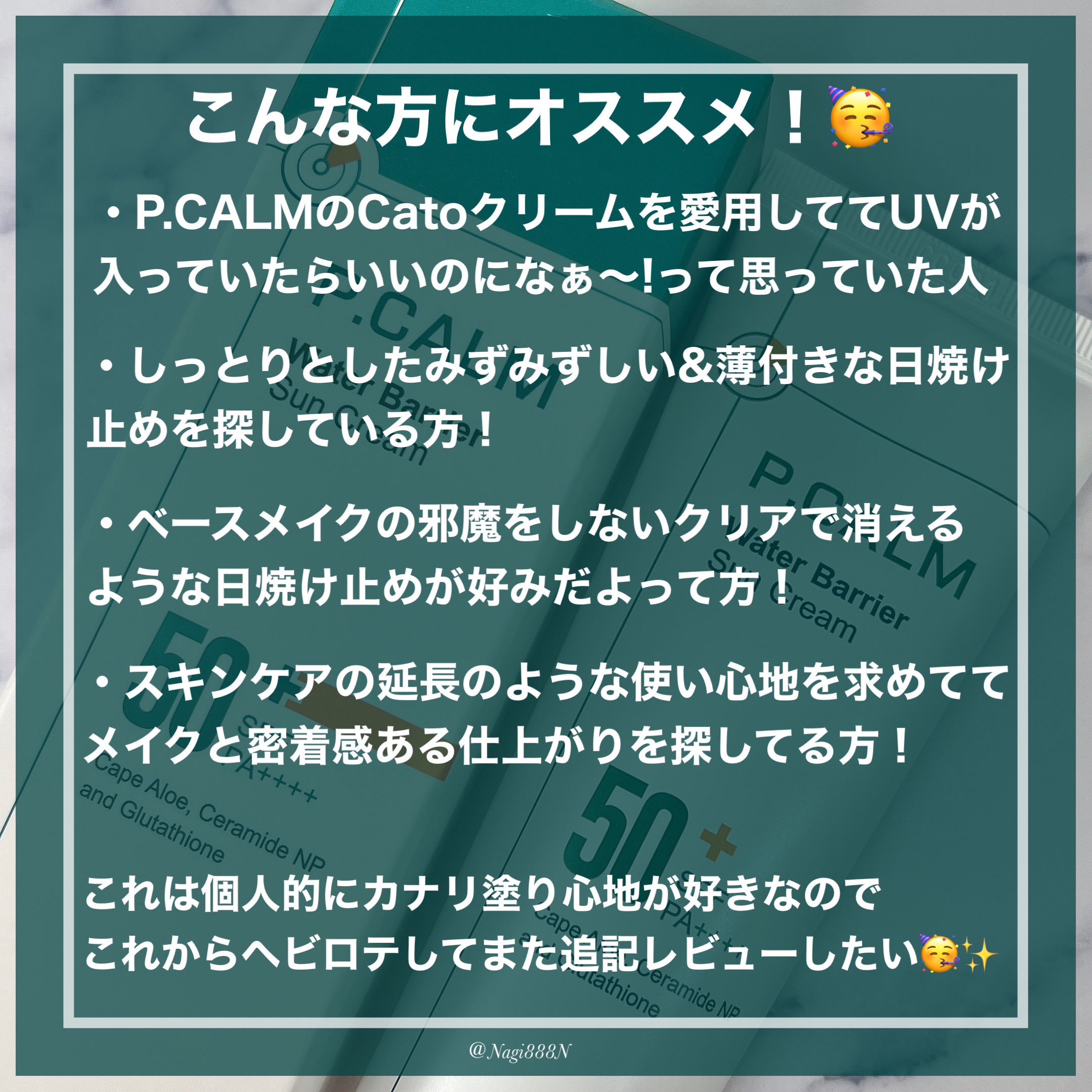 | 日焼け止め・UVケアランキング第10位 | ふわっとした硬めのクリームだけど、 するっと伸びが良く、 なじませているうちに水感を感じ、 なじむとベタつきなく さらっと軽い使い心地だよ。 | 詳細を見る | |