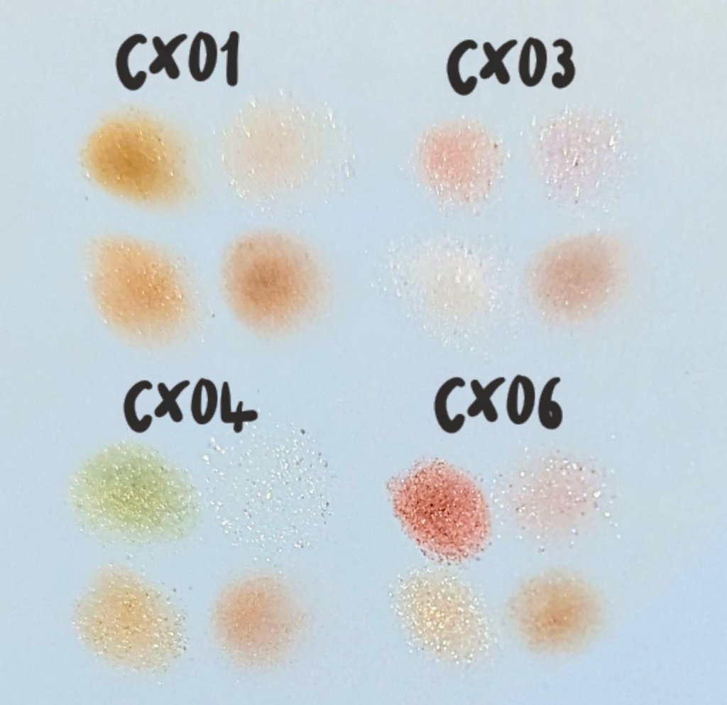 - <CS01-CS05共通> トリエチルヘキサノイン、 リンゴ酸ジイソステアリル、 メタクリル酸メチルクロスポリマー、 イソステアリン酸水添ヒマシ油、 ラウリン酸亜鉛、 スクワラン、 トコフェロール、 メチルパラベン、 (+/-) グンジョウ、 コンジョウ、 タルク、 ホウケイ酸(Ca/Al)、 マイカ、 金、 銀、 酸化チタン、 酸化鉄、 水酸化Al、 赤202、 赤226 <CS07> トリエチルヘキサノイン、 リンゴ酸ジイソステアリル、 メタクリル酸メチルクロスポリマー、 イソステアリン酸水添ヒマシ油、 ラウリン酸亜鉛、 スクワラン、 トコフェロール、 メチルパラベン、 グンジョウ、 タルク、 ホウケイ酸(Ca/Al)、 マイカ、 金、 銀、 酸化チタン、 酸化鉄、 赤202、 赤226 <CS09> トリエチルヘキサノイン、リンゴ酸ジイソステアリル、メタクリル酸メチルクロスポリマー、イソステアリン酸水添ヒマシ油、ラウリン酸亜鉛、スクワラン、トコフェロール、メチルパラベン、(+/-)グンジョウ、コンジョウ、タルク、ホウケイ酸(Ca/Al)、マイカ、金、銀、酸化チタン、酸化鉄、赤202、赤226 <CS10> トリエチルヘキサノイン、リンゴ酸ジイソステアリル、メタクリル酸メチルクロスポリマー、イソステアリン酸水添ヒマシ油、ラウリン酸亜鉛、スクワラン、トコフェロール、メチルパラベン、(+/-)グンジョウ、コンジョウ、タルク、ホウケイ酸(Ca/Al)、マイカ、金、銀、酸化チタン、酸化鉄、赤202、赤226 <CS11> トリエチルヘキサノイン、リンゴ酸ジイソステアリル、メタクリル酸メチルクロスポリマー、イソステアリン酸水添ヒマシ油、ラウリン酸亜鉛、スクワラン、トコフェロール、メチルパラベン、グンジョウ、シリカ、タルク、ホウケイ酸(Ca/Al)、マイカ、金、銀、酸化スズ、酸化チタン、酸化鉄、赤226 <CS14> トリエチルヘキサノイン、 リンゴ酸ジイソステアリル、 メタクリル酸メチルクロスポリマー、 イソステアリン酸水添ヒマシ油、 ラウリン酸亜鉛、 スクワラン、 トコフェロール、 メチルパラベン、 グンジョウ、 シリカ、 タルク、 ホウケイ酸(Ca/Al)、 マイカ、 金、 銀、 酸化スズ、 酸化チタン、 酸化鉄、 赤202、 赤226 <CS16> トリエチルヘキサノイン、リンゴ酸ジイソステアリル、メタクリル酸メチルクロスポリマー、イソステアリン酸水添ヒマシ油、ラウリン酸亜鉛、スクワラン、トコフェロール、メチルパラベン、タルク、ホウケイ酸(Ca/Al)、マイカ、金、銀、酸化チタン、酸化鉄、赤202、赤226 <CX01-CX06共通> トリエチルヘキサノイン、リンゴ酸ジイソステアリル、イソステアリン酸水添ヒマシ油、ラウリン酸亜鉛、ポリグリセリル-3ポリジメチルシロキシエチルジメチコン、スクワラン、トコフェロール、酢酸セルロース、メチルパラベン、(+/-)グンジョウ、シリカ、タルク、ホウケイ酸(Ca/Al)、マイカ、金、銀、酸化スズ、酸化チタン、酸化鉄、水酸化Al、赤202、赤226 <CX07> トリエチルヘキサノイン、リンゴ酸ジイソステアリル、イソステアリン酸水添ヒマシ油、ポリグリセリル-3ポリジメチルシロキシエチルジメチコン、ラウリン酸亜鉛、スクワラン、トコフェロール、酢酸セルロース、メチルパラベン、グンジョウ、タルク、ホウケイ酸(Ca/Al)、マイカ、金、銀、酸化チタン、酸化鉄、水酸化Al、赤202、赤226 <CX08> トリエチルヘキサノイン、リンゴ酸ジイソステアリル、イソステアリン酸水添ヒマシ油、ラウリン酸亜鉛、ポリグリセリル-3ポリジメチルシロキシエチルジメチコン、スクワラン、トコフェロール、酢酸セルロース、メチルパラベン、グンジョウ、シリカ、タルク、ホウケイ酸(Ca/Al)、マイカ、金、銀、酸化スズ、酸化チタン、酸化鉄、水酸化Al、赤226