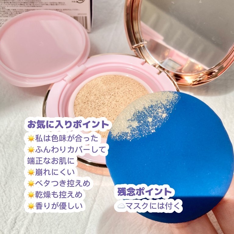 | クッションファンデーションランキング第101位 | このクッションは色味がピンクベージュなので、 血色感をだしたい方に、よりフィットします💖 | 詳細を見る |