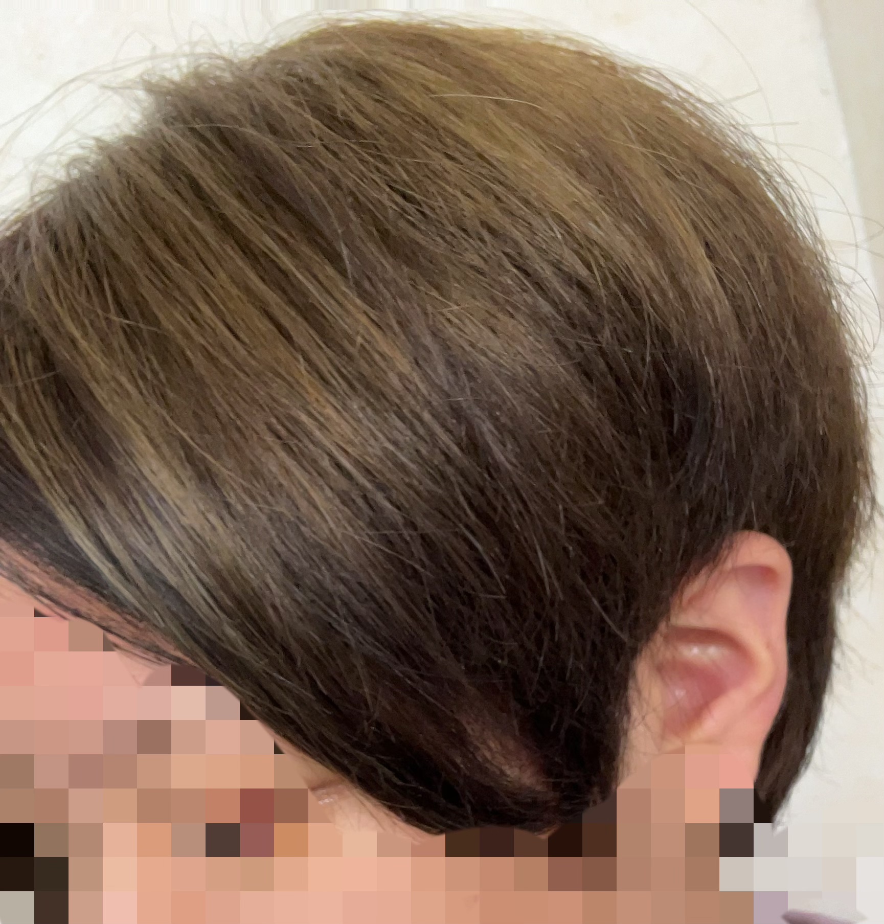 去年の12月にインナーを水色系にして残りを紫よりの茶色?になってたんですが インナーの水色が抜けて緑色が残留しました。 4月にインナー入れた美容室とは違う、いつもWカラーカットお願いしてる所に行き全頭紫系にしたかったんですが、インナーの緑がブリーチでも全然抜けず。 結局、インナー緑と残りをピンクにしました。 その数週間後にエンシェールズのアッシュピンクで染めてアッシュピンクが完全に抜けきって緑がかった金髪になりました(お団子なのは気にせず笑) その緑系金髪に今回、アンティークショコラで染めた結果。 何故かホイップなのに綺麗に染まらず。 元の色が所々残っていましたー🥲🥲 久しぶりの市販カラーでしたが、やっぱりカラーは美容室がいいのかな?と思った私でした笑
