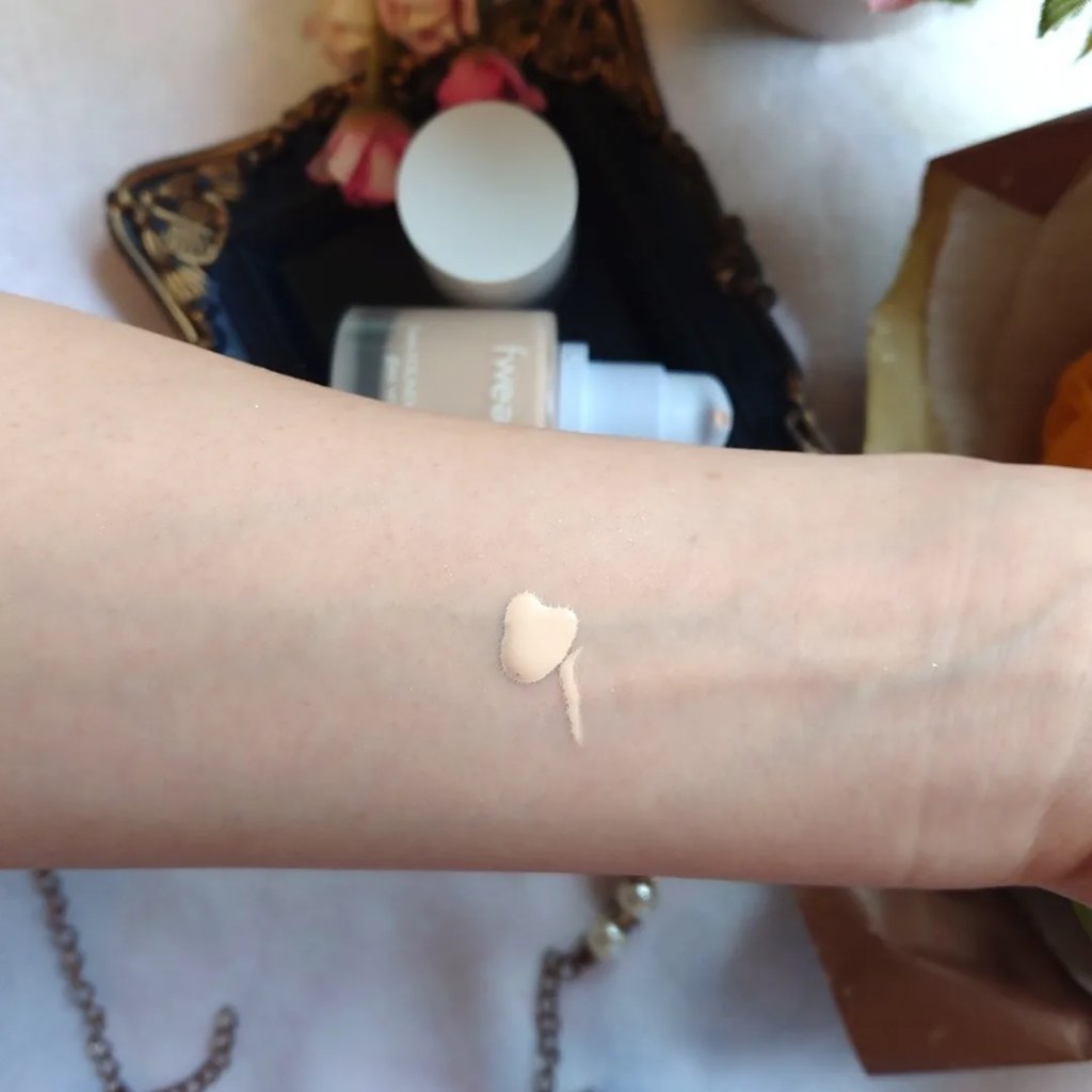 fweeだけのうるおい感、カバーカの黄金パランスがきれいでありながらすっきりとしたガラス玉肌を実現🫧 付け心地が軽くて厚塗り感がでない!保湿力も◎ なによりツヤ感が綺麗すぎる💎 崩れ方が綺麗なとこも良かった!! 久しぶりにいいファンデに出会えた🥹🫶🏻