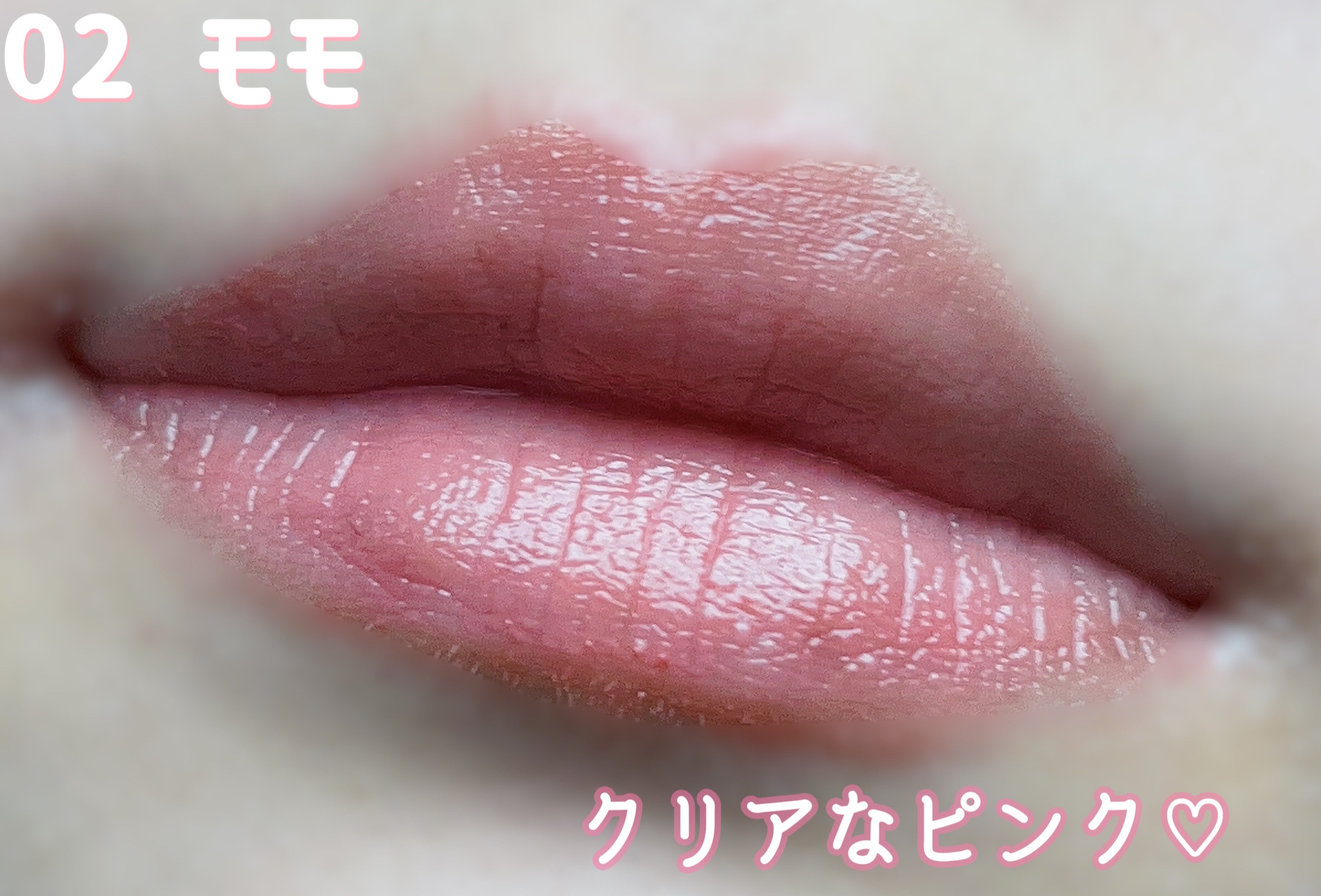 中身のラメ量はないか、とても少しでした! スウォッチのときはベビーピンクでしたが、私の唇ではビビットピンクでした。 塗ってから、無色→ベビーピンク→ビビットピンクと時間経過で色が濃くなっていく&青みになっていく印象です🌸 薄く塗るのが⭕️なようです! 保湿感はあるし、落ちにくいのでこの色が似合う方にはおすすめですが、スウォッチで気付きにくい部分ですので注意が必要かもしれません…! 一番最初のスウォッチと、二度目以降のスウォッチでも色が少し違く見えたのでもしかしたら、吹き付けの部分がなくなればスウォッチでもそのものの色味がみれるかもしれません! 店頭のスウォッチで吹き付けが取れていなかったら何度か手にスウォッチしてみてもいいかもしれません…!