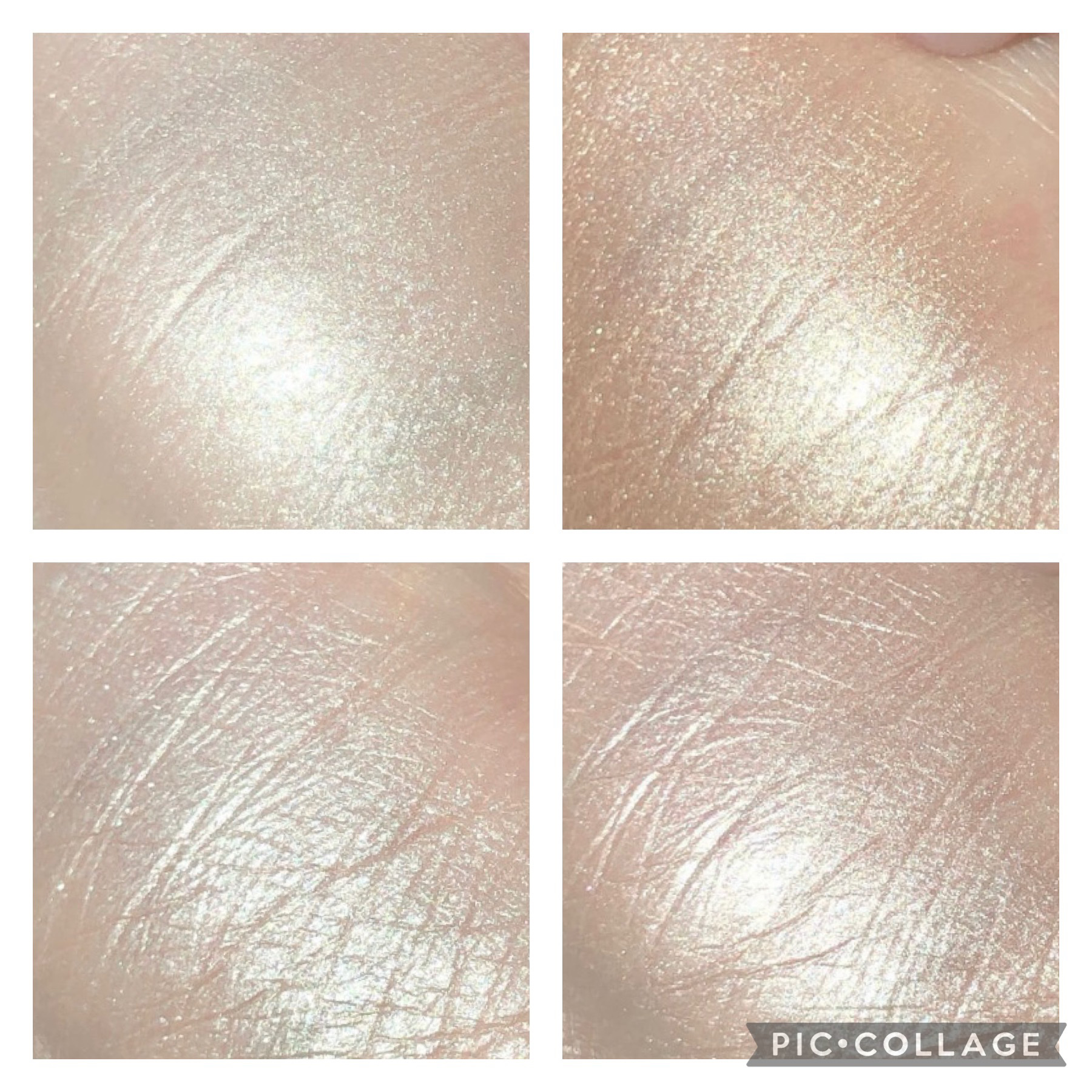 プチプラだとは思えないほどキラキラする綺麗なハイライト。ひとつ持っていて損はありません! オーロラミントは、肌につけると緑感はあまりなくて、透明感を出しながら発光してくれます。 シェルピンクはナチュラルに血色感も出しつつ馴染むカラーです