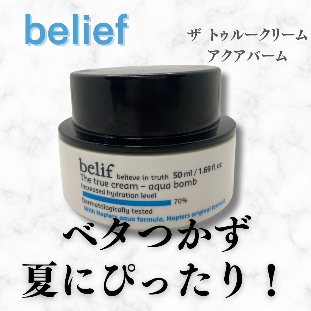 - 肌に触れた瞬間爽快なたっぷり水分感を与えるbelif代表水分爆弾クリーム。高い保湿効果を持つ女性のための保湿ハーブ、レディースメントール含有でロンドンのように変化に富んだ天気の日にも肌の潤いをキープ!爽快な青みがかったさっぱり水分ジェルクリームでベタつきにくく肌に負担の少ない使い心地で、肌を保護膜で覆います。合成有機色素や動物由来成分を使用しないbelifの真心を込めた処方です。