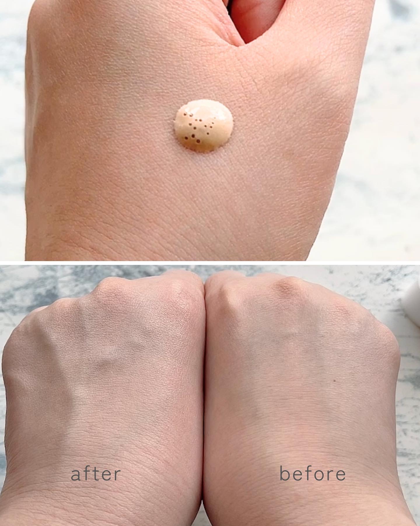 とろっとしたテクスチャーで つぶつぶが馴染みにくいけど砕けていく感じはあるからあくまで優しく優しく。 塗布後はつやぴっかーんでなかなか良い。 ハリとかはまだ変化分からないけど使用感は良かったから1本使い切るまで使ってみよう。