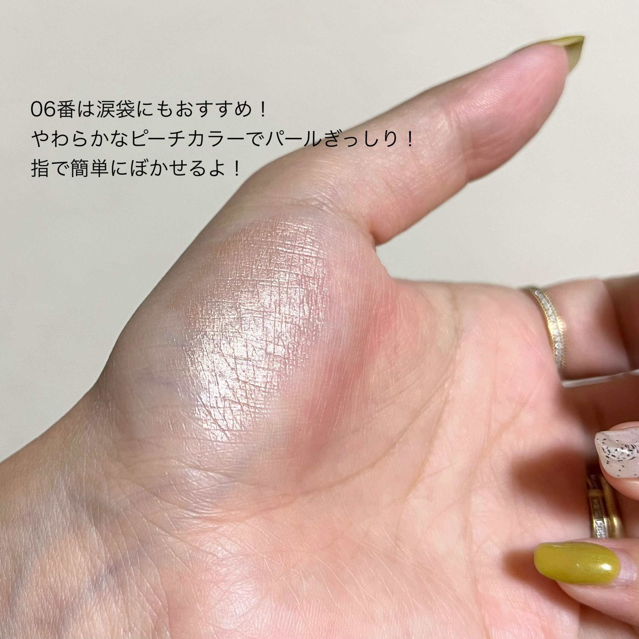 よくパレットのなかで明るいカラーをベースにまぶたに広く塗ることが多いのですが、パール感のあるカラーを避ける🙆♀️! パール感たっぷりの明るいカラーは涙袋に使うぐらい光を集めてぷっくり見せてくれるので、まぶたに広く使うと腫れぼったく見えがち😓 目元を明るくみせてくれたり、次に使うアイシャドウをぼかしやすくしてくれるけど、すっ飛ばしてメインのカラーを塗っちゃう✊🏻❤️🔥 涙袋にはたっぷり塗ってぷっくり見せる🙆♀️💕 シルキースフレアイズのマットタイプはすごく優れているな〜と感じました☺️💗 赤やオレンジなどは、入れすぎると腫れぼったく見えやすいので、見せたいカラーは下まぶた目尻にのせて色をたのしむ♡♡ パール感なしの透けマットだけじゃ物足りない… そう感じさせない華やかなラメが左上に入っているので黒目上と涙袋にのせるとすごく可愛い仕上がりに😍! 厄介な左右差のお陰でマットアイシャドウが好きになりました😌💕