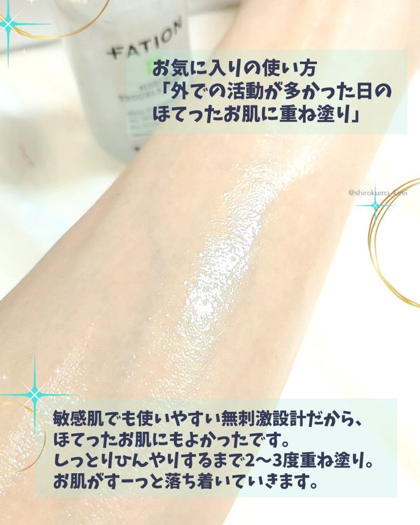 | とろみのあるテクスチャーだけど、肌にのばすとさらっとしていてみずみずしい使用感だよ☺️ | 詳細を見る | |
