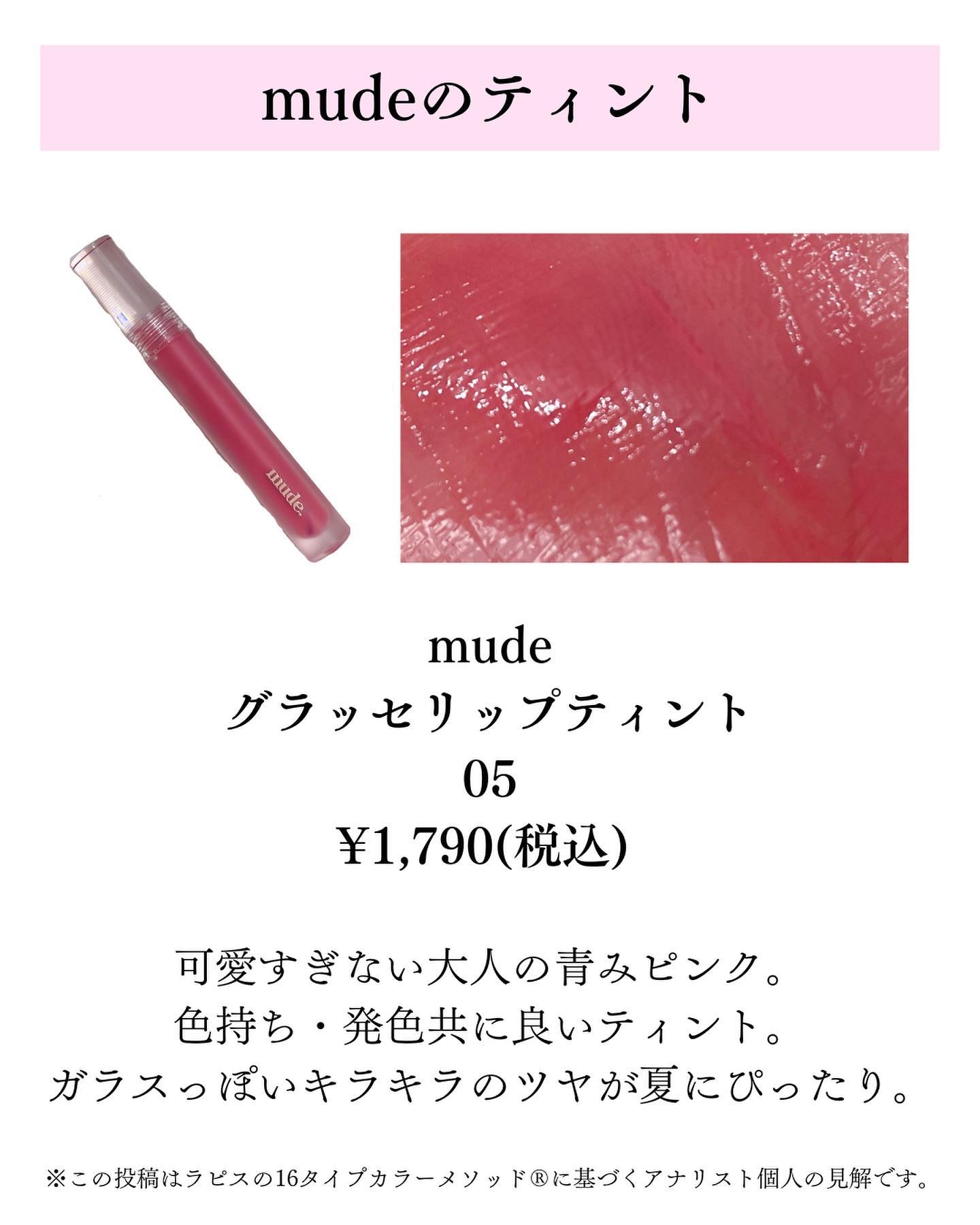 むっちむちでちゅるんとした唇に仕上がります! 色はわりとしっかりめに付くので、顔タイプフェミニン(大人顔)の私でも色が薄い!ということにはなりませんでした。 クリアウィンターの私が特にお気に入りなのは05です♡ 発色も良く、唇の縦皺も気にならないので見栄えが良い…! 診断後に何買えばいいかな?と迷っている人はこのリップを候補に入れてあげてください💄
