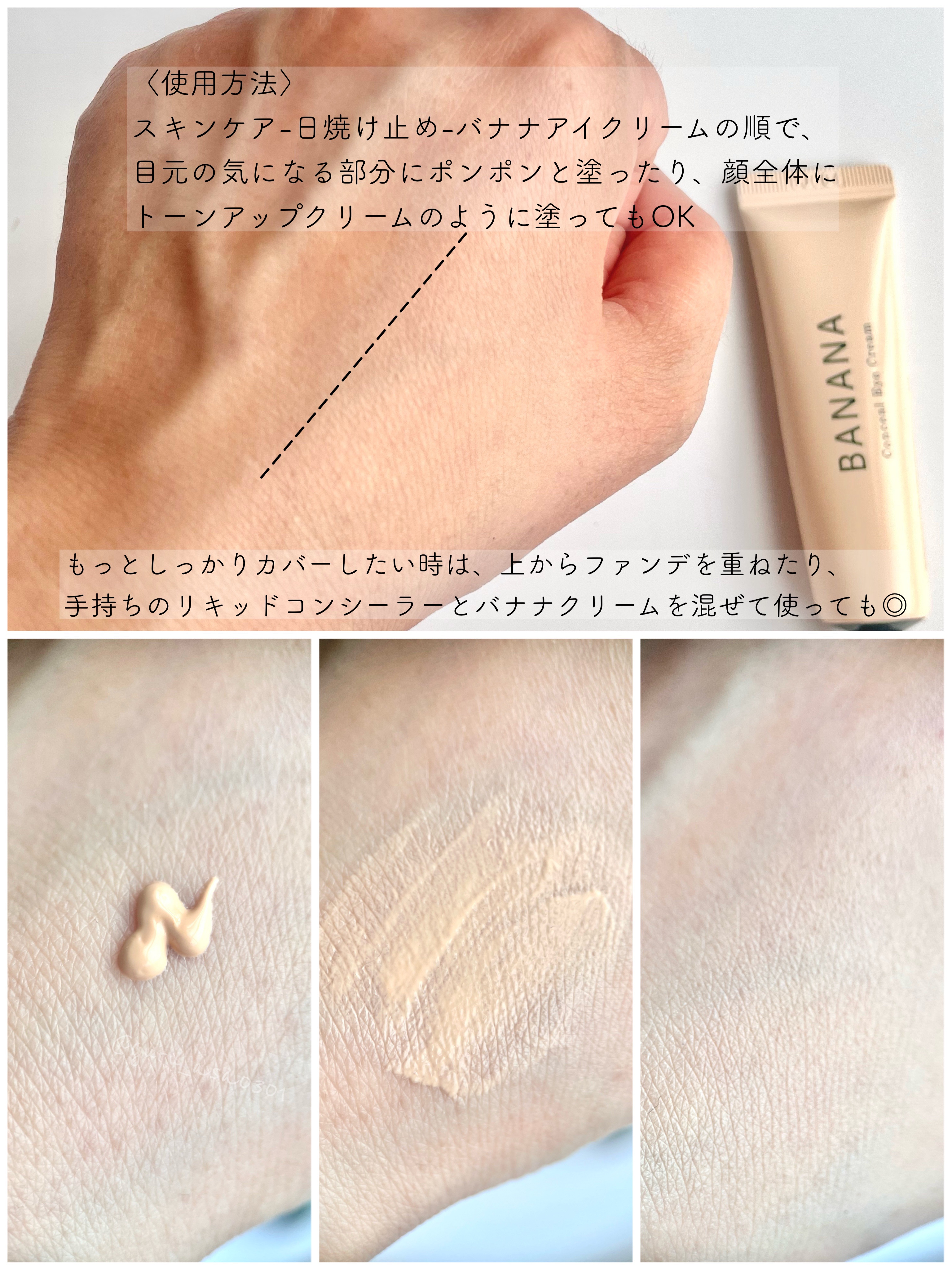 アイクリームにコンシーラー機能を加えましたよってアイテムだった😂しかも、アイクリーム90%コンシーラー10%の割合で作られているみたい! かなりみずみずしくて、コンシーラーあるあるのピキピキとは無縁。目元にピッタリ! 名前のとおりバナナの成分も配合されていて、保湿や抗酸化ケアに期待ができるそうよ🍌🧡