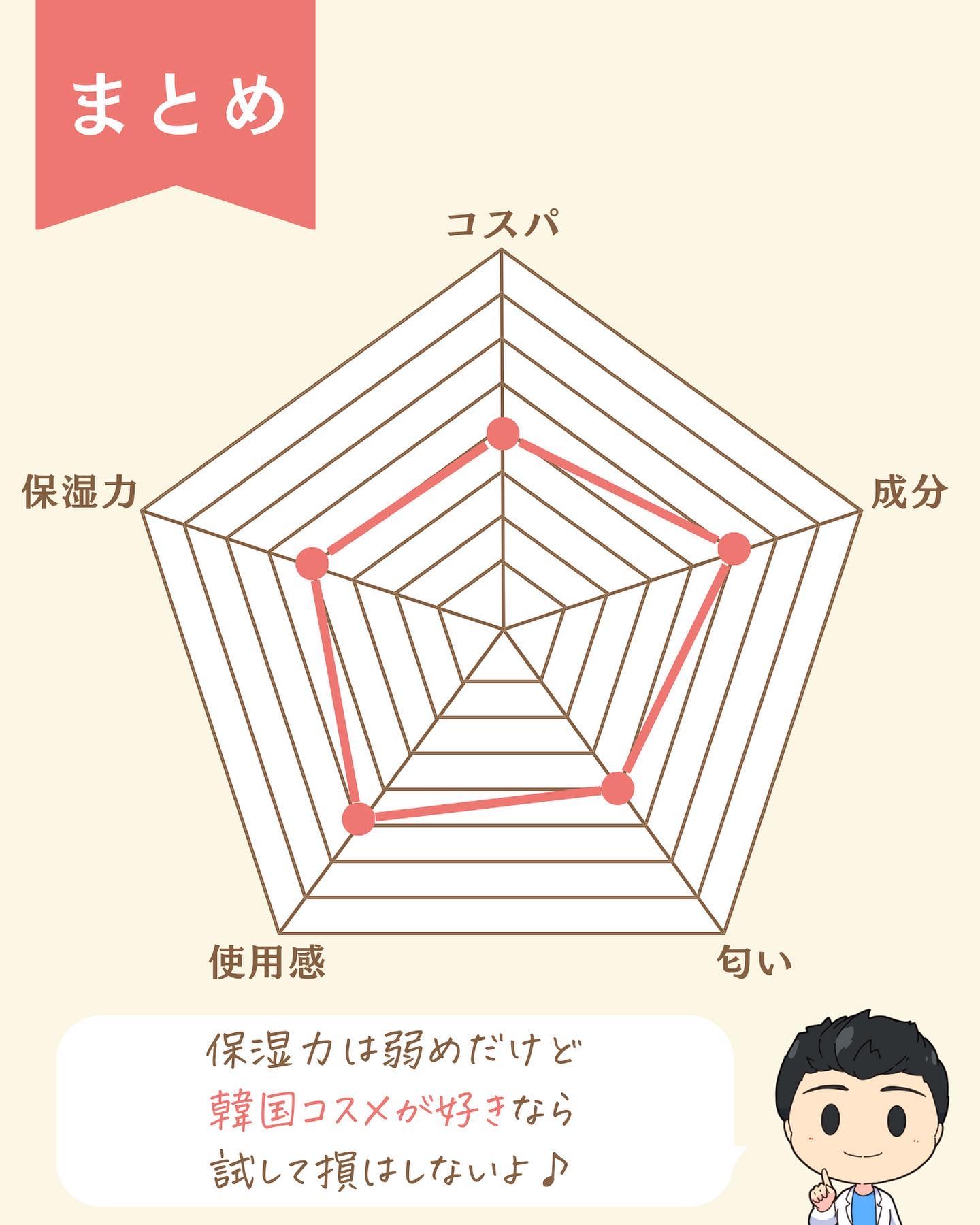 腕に塗布してから30分経過した肌水分量の平均増加率は+87%と優秀すぎる保湿力 サラッとした仕上がり DPG配合 美白有効成分のホワイトトラネキサム酸や、追加された肌荒れ防止有効成分のアラントインが配合 ぬるぬる感は強め 少ししっとりした仕上がりでしっとりタイプの乳液を塗ったような保湿力 有効成分のナイアシンアミドが配合 うるおい成分として3種類のヒアルロン酸が配合