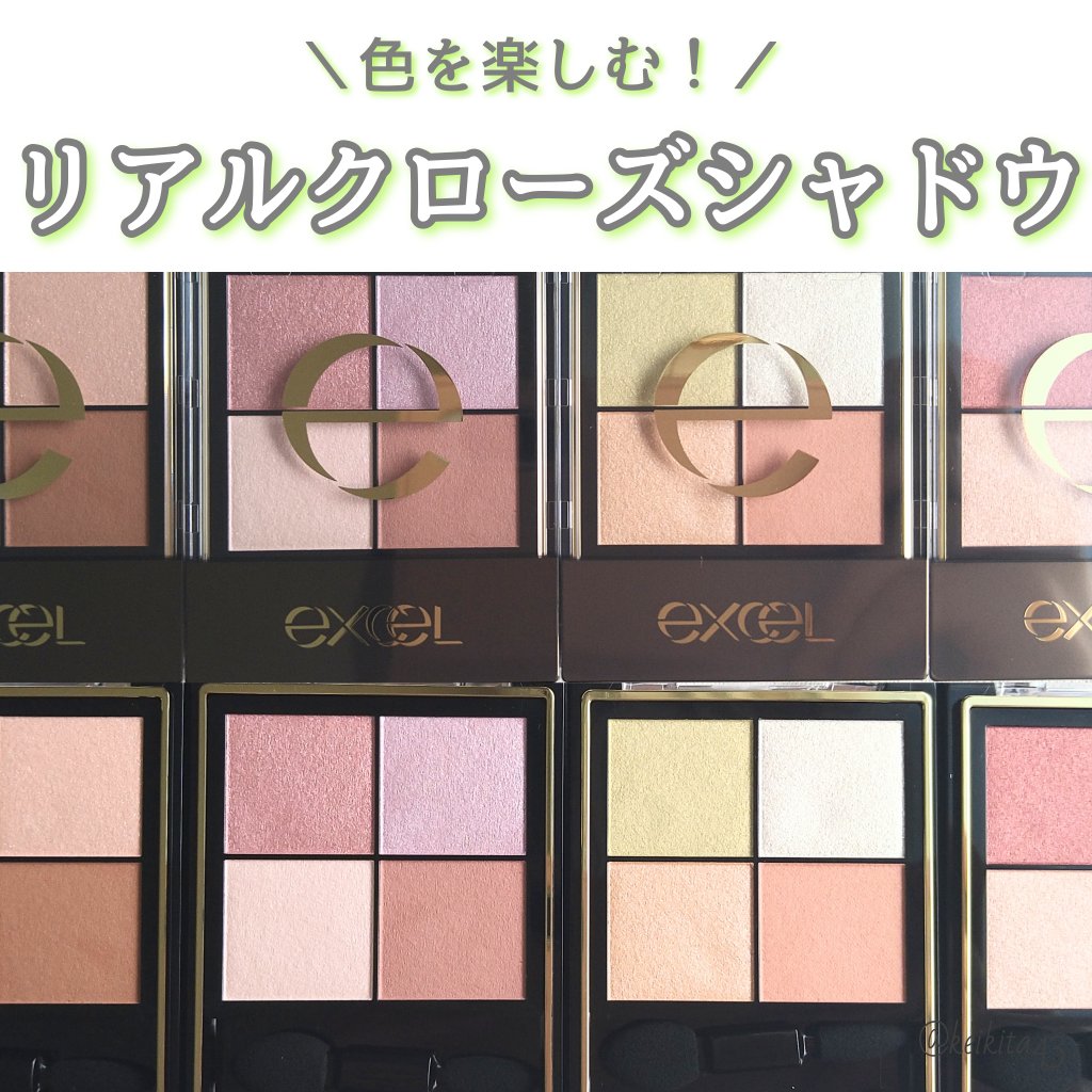 - 1.重ねてもくすまないクリアな発色。ナチュラルに溶け合う絶妙4カラー。 ツヤタイプ(左上・左下カラー):アイホール全体にぼかしたり、目尻へのポイント使いも。 ラメタイプ(右上カラー):アイホール中心や下まぶたにきらめきのアクセント。 マットタイプ(右下カラー):単色で陰影を付けたり、ツヤタイプと重ねてニュアンスをプラス。 2.うっとりするほどリッチな質感で粉飛びしないのに、軽いタッチで伸びて重ねやすいテクスチャー。 3.スクワラン(保湿)配合で目元の乾燥を防ぎます。 [PERFORMANCE] 色と質感の重ね着を楽しむ、ファッション感覚アイシャドウパレット [DESIGN] ・まぶたにひっかからない、なめらかな上質チップ ・薄型コンパクトだからポーチの中でかさばらない [QUALITY] 1.重ねてもくすまないクリアな発色 ナチュラルに溶け合う絶妙4カラー 2.パールの重ね技でまぶたに極上のツヤ感 微細多色 カラーパール 銀コーティング ガラスパール* excel GOLD-MIX処方(金パール配合)* (*右上のシャイニーカラーのみ) 3.うっとりするほどリッチな質感で粉飛び知らず!なのに、軽いタッチで伸びて重ねやすい 4.スクワラン(保湿)配合で目元の乾燥を防ぐ