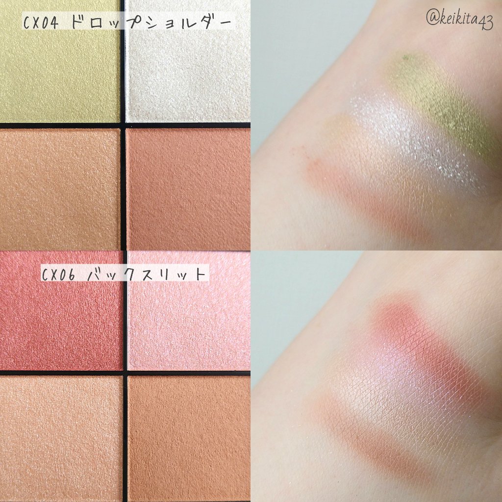 - <CS01-CS05共通> トリエチルヘキサノイン、 リンゴ酸ジイソステアリル、 メタクリル酸メチルクロスポリマー、 イソステアリン酸水添ヒマシ油、 ラウリン酸亜鉛、 スクワラン、 トコフェロール、 メチルパラベン、 (+/-) グンジョウ、 コンジョウ、 タルク、 ホウケイ酸(Ca/Al)、 マイカ、 金、 銀、 酸化チタン、 酸化鉄、 水酸化Al、 赤202、 赤226 <CS07> トリエチルヘキサノイン、 リンゴ酸ジイソステアリル、 メタクリル酸メチルクロスポリマー、 イソステアリン酸水添ヒマシ油、 ラウリン酸亜鉛、 スクワラン、 トコフェロール、 メチルパラベン、 グンジョウ、 タルク、 ホウケイ酸(Ca/Al)、 マイカ、 金、 銀、 酸化チタン、 酸化鉄、 赤202、 赤226 <CS09> トリエチルヘキサノイン、リンゴ酸ジイソステアリル、メタクリル酸メチルクロスポリマー、イソステアリン酸水添ヒマシ油、ラウリン酸亜鉛、スクワラン、トコフェロール、メチルパラベン、(+/-)グンジョウ、コンジョウ、タルク、ホウケイ酸(Ca/Al)、マイカ、金、銀、酸化チタン、酸化鉄、赤202、赤226 <CS10> トリエチルヘキサノイン、リンゴ酸ジイソステアリル、メタクリル酸メチルクロスポリマー、イソステアリン酸水添ヒマシ油、ラウリン酸亜鉛、スクワラン、トコフェロール、メチルパラベン、(+/-)グンジョウ、コンジョウ、タルク、ホウケイ酸(Ca/Al)、マイカ、金、銀、酸化チタン、酸化鉄、赤202、赤226 <CS11> トリエチルヘキサノイン、リンゴ酸ジイソステアリル、メタクリル酸メチルクロスポリマー、イソステアリン酸水添ヒマシ油、ラウリン酸亜鉛、スクワラン、トコフェロール、メチルパラベン、グンジョウ、シリカ、タルク、ホウケイ酸(Ca/Al)、マイカ、金、銀、酸化スズ、酸化チタン、酸化鉄、赤226 <CS14> トリエチルヘキサノイン、 リンゴ酸ジイソステアリル、 メタクリル酸メチルクロスポリマー、 イソステアリン酸水添ヒマシ油、 ラウリン酸亜鉛、 スクワラン、 トコフェロール、 メチルパラベン、 グンジョウ、 シリカ、 タルク、 ホウケイ酸(Ca/Al)、 マイカ、 金、 銀、 酸化スズ、 酸化チタン、 酸化鉄、 赤202、 赤226 <CS16> トリエチルヘキサノイン、リンゴ酸ジイソステアリル、メタクリル酸メチルクロスポリマー、イソステアリン酸水添ヒマシ油、ラウリン酸亜鉛、スクワラン、トコフェロール、メチルパラベン、タルク、ホウケイ酸(Ca/Al)、マイカ、金、銀、酸化チタン、酸化鉄、赤202、赤226 <CX01-CX06共通> トリエチルヘキサノイン、リンゴ酸ジイソステアリル、イソステアリン酸水添ヒマシ油、ラウリン酸亜鉛、ポリグリセリル-3ポリジメチルシロキシエチルジメチコン、スクワラン、トコフェロール、酢酸セルロース、メチルパラベン、(+/-)グンジョウ、シリカ、タルク、ホウケイ酸(Ca/Al)、マイカ、金、銀、酸化スズ、酸化チタン、酸化鉄、水酸化Al、赤202、赤226 <CX07> トリエチルヘキサノイン、リンゴ酸ジイソステアリル、イソステアリン酸水添ヒマシ油、ポリグリセリル-3ポリジメチルシロキシエチルジメチコン、ラウリン酸亜鉛、スクワラン、トコフェロール、酢酸セルロース、メチルパラベン、グンジョウ、タルク、ホウケイ酸(Ca/Al)、マイカ、金、銀、酸化チタン、酸化鉄、水酸化Al、赤202、赤226 <CX08> トリエチルヘキサノイン、リンゴ酸ジイソステアリル、イソステアリン酸水添ヒマシ油、ラウリン酸亜鉛、ポリグリセリル-3ポリジメチルシロキシエチルジメチコン、スクワラン、トコフェロール、酢酸セルロース、メチルパラベン、グンジョウ、シリカ、タルク、ホウケイ酸(Ca/Al)、マイカ、金、銀、酸化スズ、酸化チタン、酸化鉄、水酸化Al、赤226