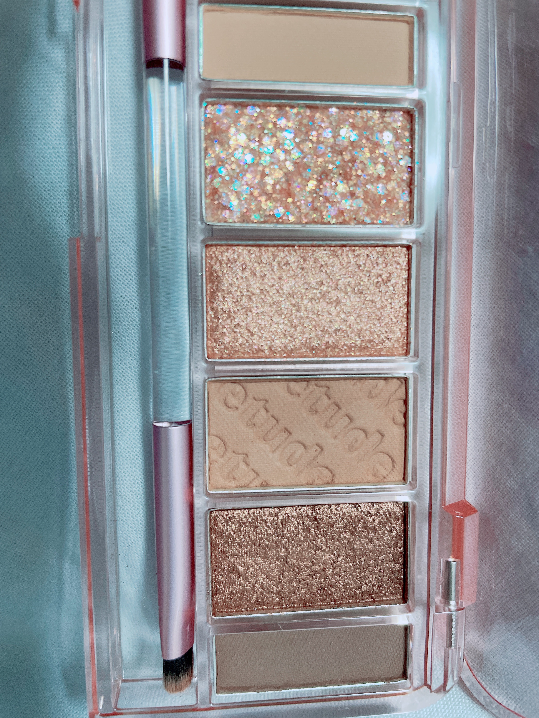 特に星降るオーロラが綺麗なラメでいい女感出せる気がします😂 6色なので初心者でも使いやすいところも気に入っています。 こんなに綺麗な色が揃っているのにあまり知られていないようでびっくりです🫢友達に布教してきます。 BTSのキャラクターがパッケージにいるようです。知らない子ですが可愛いなと思い眺めています👀 私の場合、全色満遍なく使用したいタイプなので上段真ん中の薄いピンクカラーをベースに塗り、目頭に下段真ん中のピンクを塗り、目尻に下段右の茶色を塗っています。 涙袋には上段左のラメを。瞼の中心に上段右の紫ラメと下段左のオーロララメを塗ります。たまにラメ感がもっと欲しいと気が狂っている時には紫ラメとオーロララメを涙袋中心にちょっと足します🎨🎨🎨