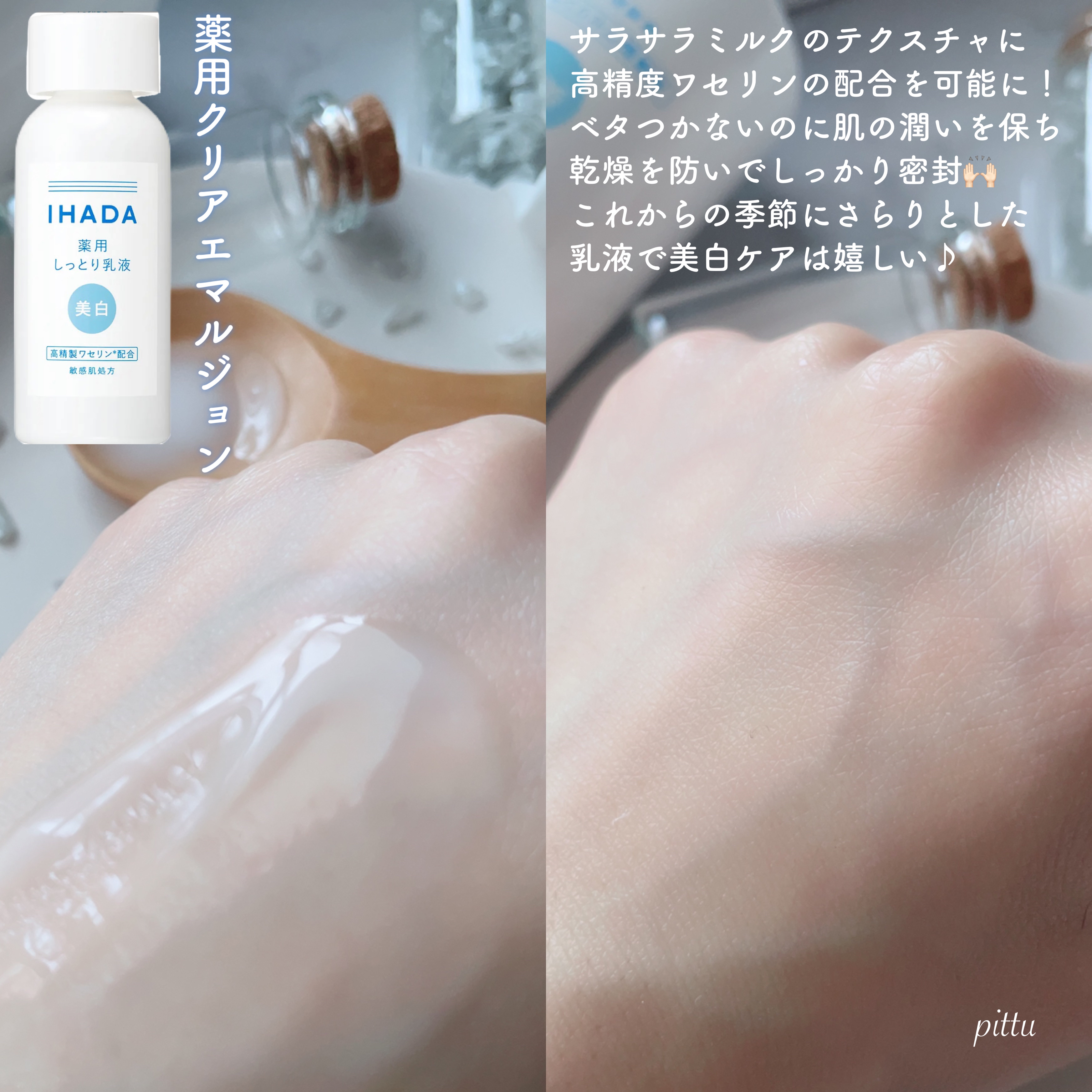 イハダ薬用クリアローション薬用クリアエマルジョン敏感肌やトラブルリスク肌向けに設計された化粧水&乳液♪高精製ワセリン配合で瞬時にうるおい保護膜を形成し、乾燥などの外部刺激から肌を守ります。肌の3大悩み(シミ・そばかす、肌荒れ・乾燥、ニキビ)を...
