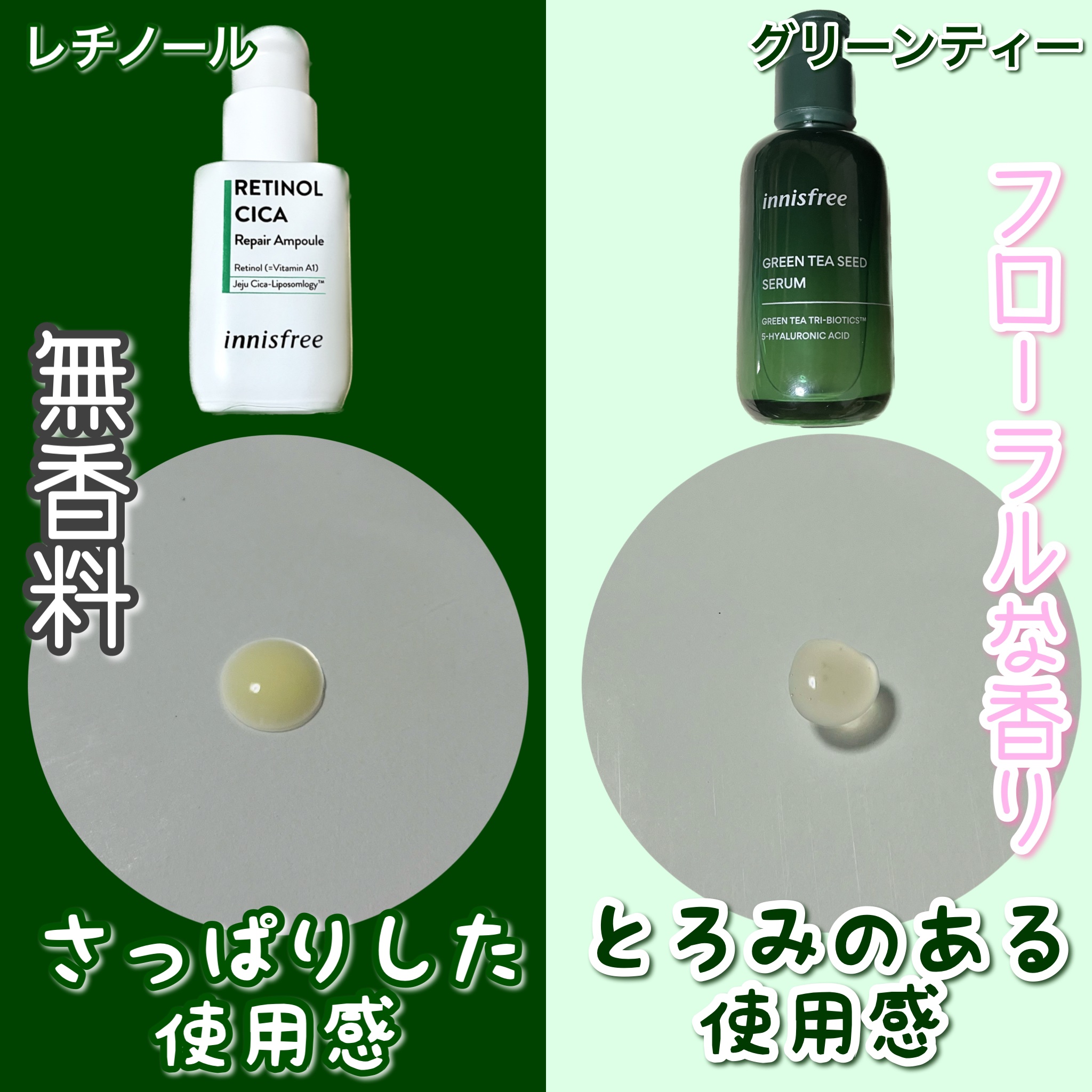 もうレチノールで悩まない!大人気レチノール比較【VT】シカレチAエッセンス0.1容量:30ml価格:3300円1mlあたり:110円【innisfree】レチノール シカ リペア セラム容量:30ml価格:3960円1mlあたり:132円【C...