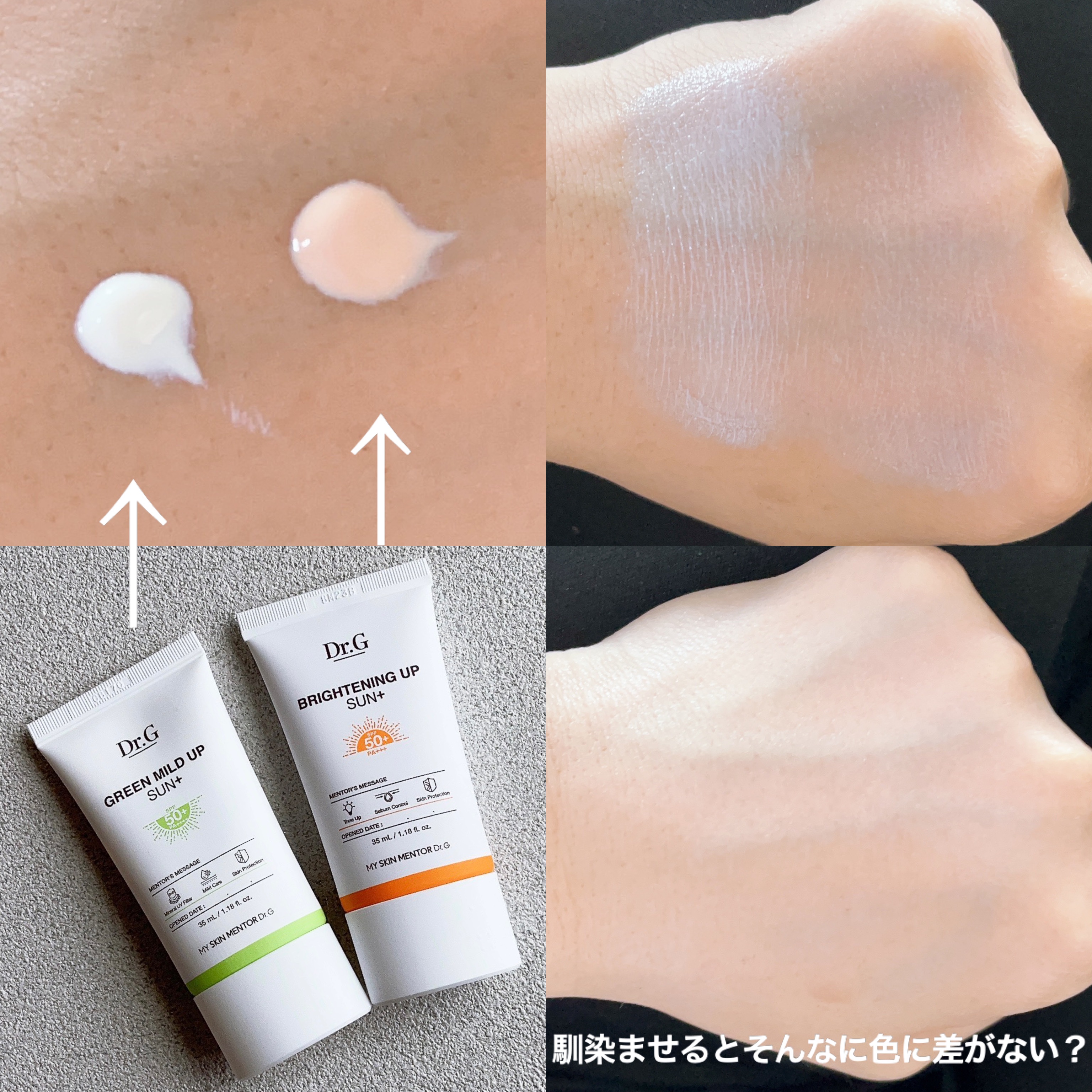 ブライトニングアップサンプラスは化粧下地としても使える日焼け止めです◎ ピーチ色ベースなタイプで、自然にトーンアップ*してくれます🤲´- グリーンマイルドアップサンプラスはオリーブヤングで5年間連続日焼け止め部門受賞🌟⋆꙳ やわらかいクリームタイプでベタつかず密着!! 整肌に効果的なツボクサエキスとハリを向上させるピクノジェノール配合𓂃𓈒 どちらもなめらかによく伸びるから塗りやすいし、コスパもいいなと思ったよ😇🙌