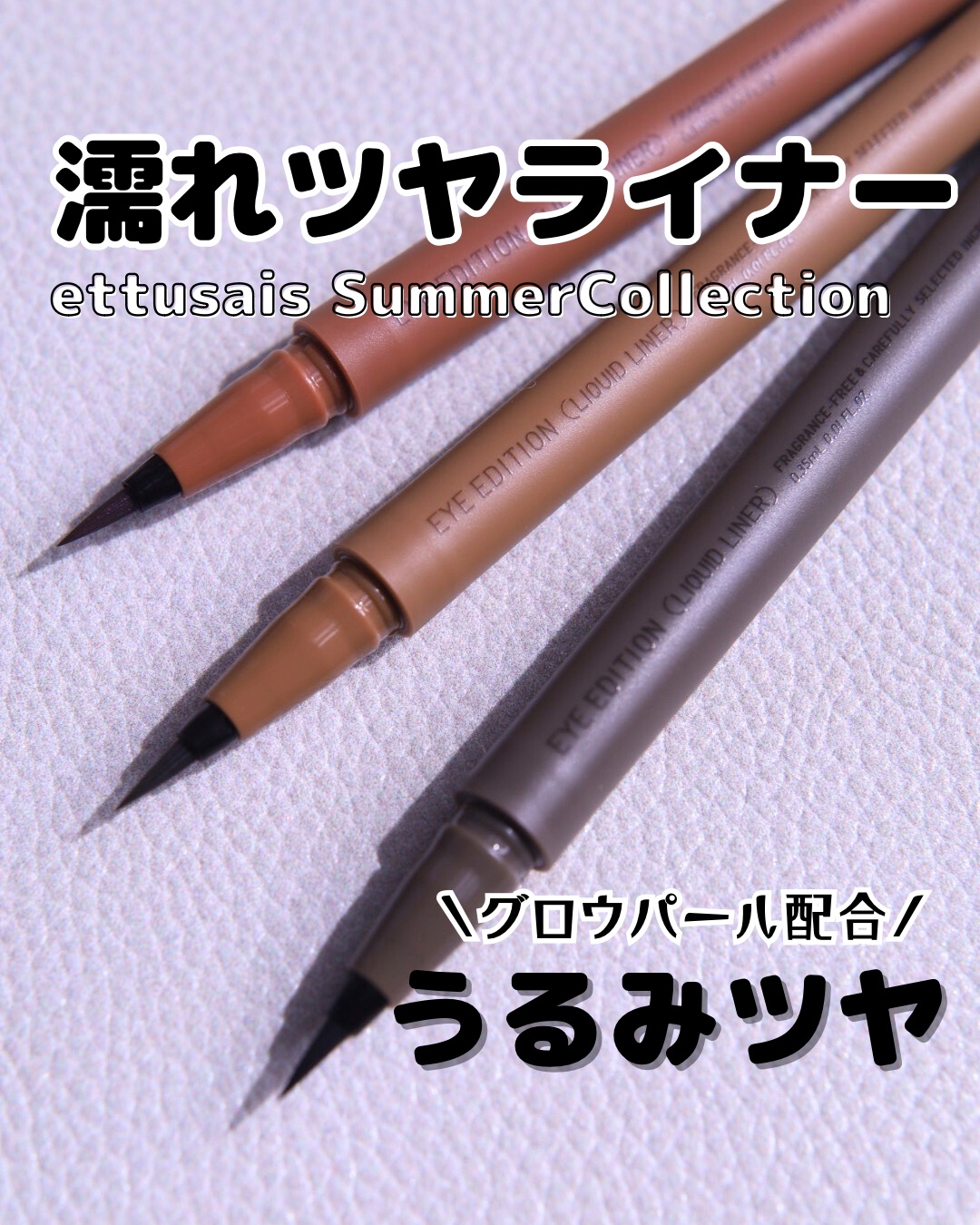- 潤んだツヤを放つグロウパールで、 目尻ラインを印象的に引き立てるリキッドアイライナー 〇潤んだようなツヤを放つ高輝度なグロウパールと、絶妙ニュアンスカラーで目尻を引き立てる。 〇コシがあり、ブレずに描きやすい筆。 ー職人による手組み×専用設備で仕上げた高品質な筆 ー厳選した2種の毛を混毛 ー高輝度なグロウパール配合にも適した構造 〇つけたての仕上がりが長時間持続。 〇汗・皮脂・涙・こすれ・湿気に強い 〇ウォータープルーフ 〇お湯で簡単に落とせる。 〇美容液成分配合 ー保水成分(ヒアルロン酸) 〇無香料 〇アレルギーテスト済(すべての方にアレルギーが起きないというわけではありません)