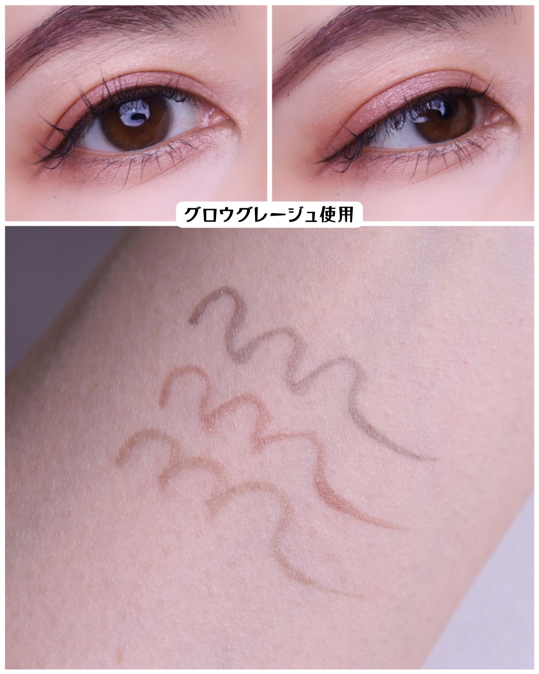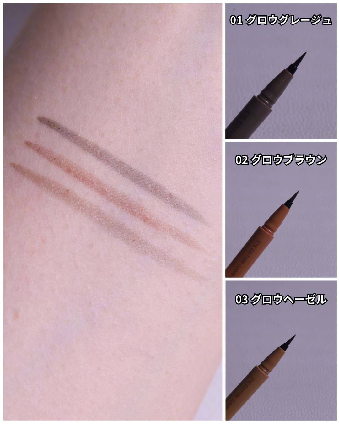 - <01 グロウグレージュ> 水、BG、アクリレーツコポリマーアンモニウム、アルミナ、結晶セルロース、キサンタンガム、ヒアルロン酸Na、ベヘネス-30、カプリリルグリコール、セルロースガム、ポリグリセリル-3ジシロキサンジメチコン、酸化スズ、AMP、クエン酸、セスキイソステアリン酸ソルビタン、トリイソステアリン酸ポリグリセリル-2、ミリスチン酸ポリグリセリル-10、ステアリン酸ポリグリセリル-10、トリオレイン酸ソルビタン、トコフェロール、フェノキシエタノール、メチルパラベン、エチルパラベン、酸化チタン、カーボンブラック <02 グロウブラウン> 水、BG、アクリレーツコポリマーアンモニウム、アルミナ、結晶セルロース、キサンタンガム、ヒアルロン酸Na、ベヘネス-30、カプリリルグリコール、セルロースガム、ポリグリセリル-3ジシロキサンジメチコン、酸化スズ、クエン酸、AMP、セスキイソステアリン酸ソルビタン、トリイソステアリン酸ポリグリセリル-2、ミリスチン酸ポリグリセリル-10、ステアリン酸ポリグリセリル-10、トリオレイン酸ソルビタン、トコフェロール、フェノキシエタノール、メチルパラベン、エチルパラベン、酸化鉄、合成金雲母、酸化チタン、カーボンブラック、赤226 <03 グロウヘーゼル> 水、BG、アクリレーツコポリマーアンモニウム、結晶セルロース、キサンタンガム、ヒアルロン酸Na、アルミナ、ベヘネス-30、カプリリルグリコール、セルロースガム、ポリグリセリル-3ジシロキサンジメチコン、酸化スズ、AMP、クエン酸、セスキイソステアリン酸ソルビタン、トリイソステアリン酸ポリグリセリル-2、ミリスチン酸ポリグリセリル-10、ステアリン酸ポリグリセリル-10、トリオレイン酸ソルビタン、トコフェロール、フェノキシエタノール、メチルパラベン、エチルパラベン、酸化鉄、合成金雲母、酸化チタン、カーボンブラック、マイカ <05 ブラウンシェイド> 水、アクリレーツコポリマーアンモニウム、BG、1,2-ヘキサンジオール、アルミナ、結晶セルロース、キサンタンガム、ヒアルロン酸Na、ベヘネス-30、セルロースガム、ポリグリセリル-3ジシロキサンジメチコン、水酸化Al、酸化スズ、クエン酸、AMP、セスキイソステアリン酸ソルビタン、トリイソステアリン酸ポリグリセリル-2、ミリスチン酸ポリグリセリル-10、ステアリン酸ポリグリセリル-10、トリオレイン酸ソルビタン、トコフェロール、フェノキシエタノール、メチルパラベン、エチルパラベン、酸化チタン、酸化鉄、カーボンブラック、マイカ <06 拡張極薄ピンク> 水、アクリレーツコポリマーアンモニウム、BG、1,2-ヘキサンジオール、アルミナ、結晶セルロース、キサンタンガム、ヒアルロン酸Na、ベヘネス-30、セルロースガム、ポリグリセリル-3ジシロキサンジメチコン、酸化スズ、クエン酸、AMP、セスキイソステアリン酸ソルビタン、トリイソステアリン酸ポリグリセリル-2、ミリスチン酸ポリグリセリル-10、ステアリン酸ポリグリセリル-10、トリオレイン酸ソルビタン、トコフェロール、フェノキシエタノール、メチルパラベン、エチルパラベン、酸化鉄、酸化チタン、マイカ <07 トイプーブラウン> 水、アクリレーツコポリマーアンモニウム、BG、1,2-ヘキサンジオール、結晶セルロース、キサンタンガム、ヒアルロン酸Na、ベヘネス-30、アルミナ、水酸化Al、ポリグリセリル-3ジシロキサンジメチコン、セルロースガム、クエン酸、AMP、酸化スズ、セスキイソステアリン酸ソルビタン、トリイソステアリン酸ポリグリセリル-2、ミリスチン酸ポリグリセリル-10、ステアリン酸ポリグリセリル-10、トリオレイン酸ソルビタン、トコフェロール、フェノキシエタノール、メチルパラベン、エチルパラベン、酸化鉄、酸化チタン、カーボンブラック、マイカ <04 ライラックモーブ> 水、アクリレーツコポリマーアンモニウム、BG、1,2-ヘキサンジオール、アルミナ、結晶セルロース、キサンタンガム、ヒアルロン酸Na、ベヘネス-30、シリカ、セルロースガム、ポリグリセリル-3ジシロキサンジメチコン、水酸化Al、酸化スズ、クエン酸、AMP、セスキイソステアリン酸ソルビタン、トリイソステアリン酸ポリグリセリル-2、ミリスチン酸ポリグリセリル-10、ステアリン酸ポリグリセリル-10、トリオレイン酸ソルビタン、トコフェロール、フェノキシエタノール、メチルパラベン、エチルパラベン、酸化チタン、酸化鉄、マイカ、カーボンブラック、赤226、青1