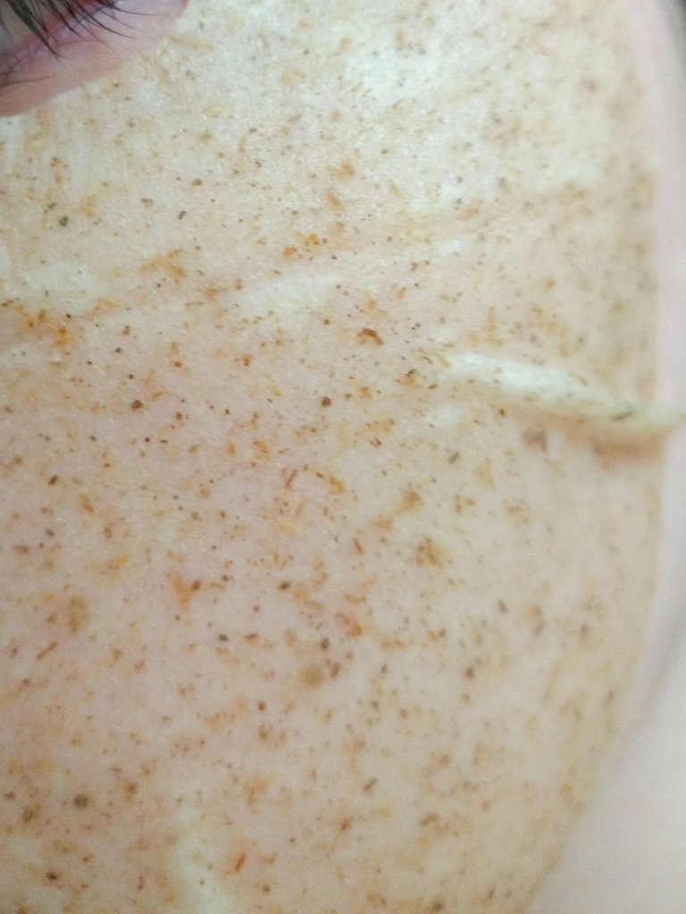 シャバシャバの液で清涼感のあるマスク。 肌を冷やしてくれるのでメイク前にもおすすめ。 開けた瞬間特徴的なシートにびっくり🙂 練り込まれた粒はなんとヨモギのすりおろし。 普通のシートよりしっかりした素材なので顔のパーツの凹凸からは浮き気味に感じる。