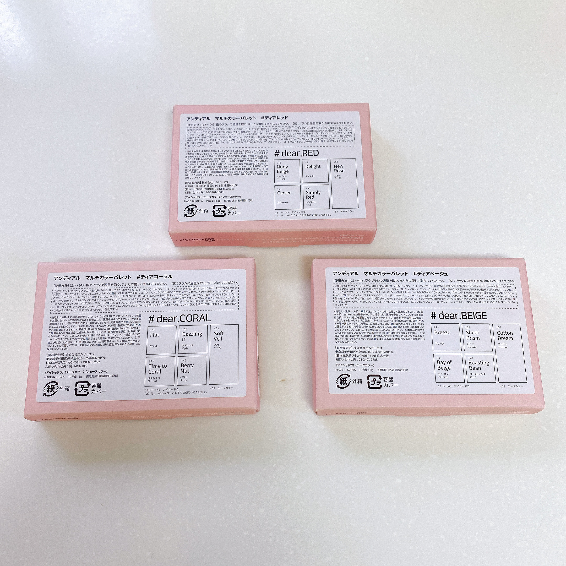 - ディアレッド タルク、マイカ、ジメチコン、シリカ、ナイロン-12、ホウケイ酸(Ca/チタン)、イソドデカン、ステアロイルオキシステアリン酸オクチルドデシル、フェニルトリメチコン、合成フルオロフロゴパイト、酸化チタン、赤226、メタクリル酸メチルクロスポリマー、黄5、酸化鉄、ミリスチン酸Mg、メチルプロパンジオール、(HDI/トリメチロールヘキシルラクトン)クロスポリマー、ホウケイ酸(Ca/Al)、マカデミア種子油、プロパンジオール、ジエチルヘキサン酸ネオペンチルグリコール、ラウリン酸ヘキシル、(ジメチコン/ビニルジメチコン)クロスポリマー、カルミン、(ヘキシルデカン酸/セバシン酸)ジグリセリルオリゴエステル、セスキイソステアリン酸ソルビタン、ステアリン酸Mg、グンジョウ、水添レシチン、マンガンバイオレット、ヘキサ(ヒドロキシステアリン酸/ステアリン酸/ロジン酸)ジペンタエリスリチル、ラウロイルリシン、フェノキシエタノール、トリエトキシカプリリルシラン、黄4、合成ワックス、コンジョウ、酸化スズ、メチコン、水 ディアベージュ タルク、マイカ、ジメチコン、酸化チタン、酸化鉄、シリカ、ナイロン-12、イソドデカン、合成フルオロフロゴパイト、フェニルトリメチコン、ホウケイ酸(Ca/チタン)、ステアロイルオキシステアリン酸オクチルドデシル、ホウケイ酸(Ca/Na)、グンジョウ、メタクリル酸メチルクロスポリマー、ミリスチン酸Mg、ジエチルヘキサン酸ネオペンチルグリコール、メチルプロパンジオール、(HDI/トリメチロールヘキシルラクトン)クロスポリマー、プロパンジオール、マカデミア種子油、ラウリン酸ヘキシル、ホウケイ酸(Ca/Al)、(ジメチコン/ビニルジメチコン)クロスポリマー、ヘキサ(ヒドロキシステアリン酸/ステアリン酸/ロジン酸)ジペンタエリスリチル、ステアリン酸Mg、(ヘキシルデカン酸/セバシン酸)ジグリセリルオリゴエステル、セスキイソステアリン酸ソルビタン、リンゴ酸ジイソステアリル、ネオペンタン酸イソステアリル、黄4、水添レシチン、ラウロイルリシン、トリエトキシカプリリルシラン、カルミン、フェノキシエタノール、ポリブテン、メチコン、合成ワックス、酸化スズ、赤226、マンガンバイオレット、水 ディアコーラル タルク、マイカ、ジメチコン、酸化鉄、シリカ、酸化チタン、ホウケイ酸(Ca/チタン)、ナイロン-12、イソドデカン、合成フルオロフロゴパイト、ステアロイルオキシステアリン酸オクチルドデシル、フェニルトリメチコン、窒化ホウ素、ホウケイ酸(Ca/Al)、トリ(カプリル酸/カプリン酸)グリセリル、メタクリル酸メチルクロスポリマー、メチルプロパンジオール、ミリスチン酸Mg、マンガンバイオレット、プロパンジオール、ジエチルヘキサン酸ネオペンチルグリコール、ラウリン酸ヘキシル、ミネラルオイル、ステアリン酸Mg、(ジメチコン/ビニルジメチコン)クロスポリマー、(ヘキシルデカン酸/セバシン酸)ジグリセリルオリゴエステル、カルミン、黄4、(HDI/トリメチロールヘキシルラクトン)クロスポリマー、マカデミア種子油、黄5、セスキイソステアリン酸ソルビタン、ステアリン酸ジメチコノール、ヘキサ(ヒドロキシステアリン酸/ステアリン酸/ロジン酸)ジペンタエリスリチル、グンジョウ、赤226、フェノキシエタノール、水添レシチン、トリエトキシカプリリルシラン、合成ワックス、ヒドロキシプロピルビスパルミタミドMEA、メチコン、ラウロイルリシン、酸化スズ、水