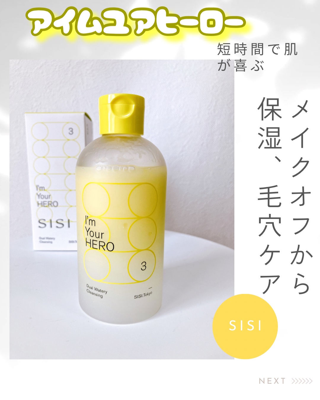 \振ってふくだけで肌が整う/▶︎SISIアイムユアヒーローライトオイル×美容液の2層をシェイクすることで美容液がオイルを包み込み、美容液で洗っているかのようなウォータークレンジング。メイクオフだけでなく、洗顔、毛穴ケア*1、角質ケア、保湿まで...