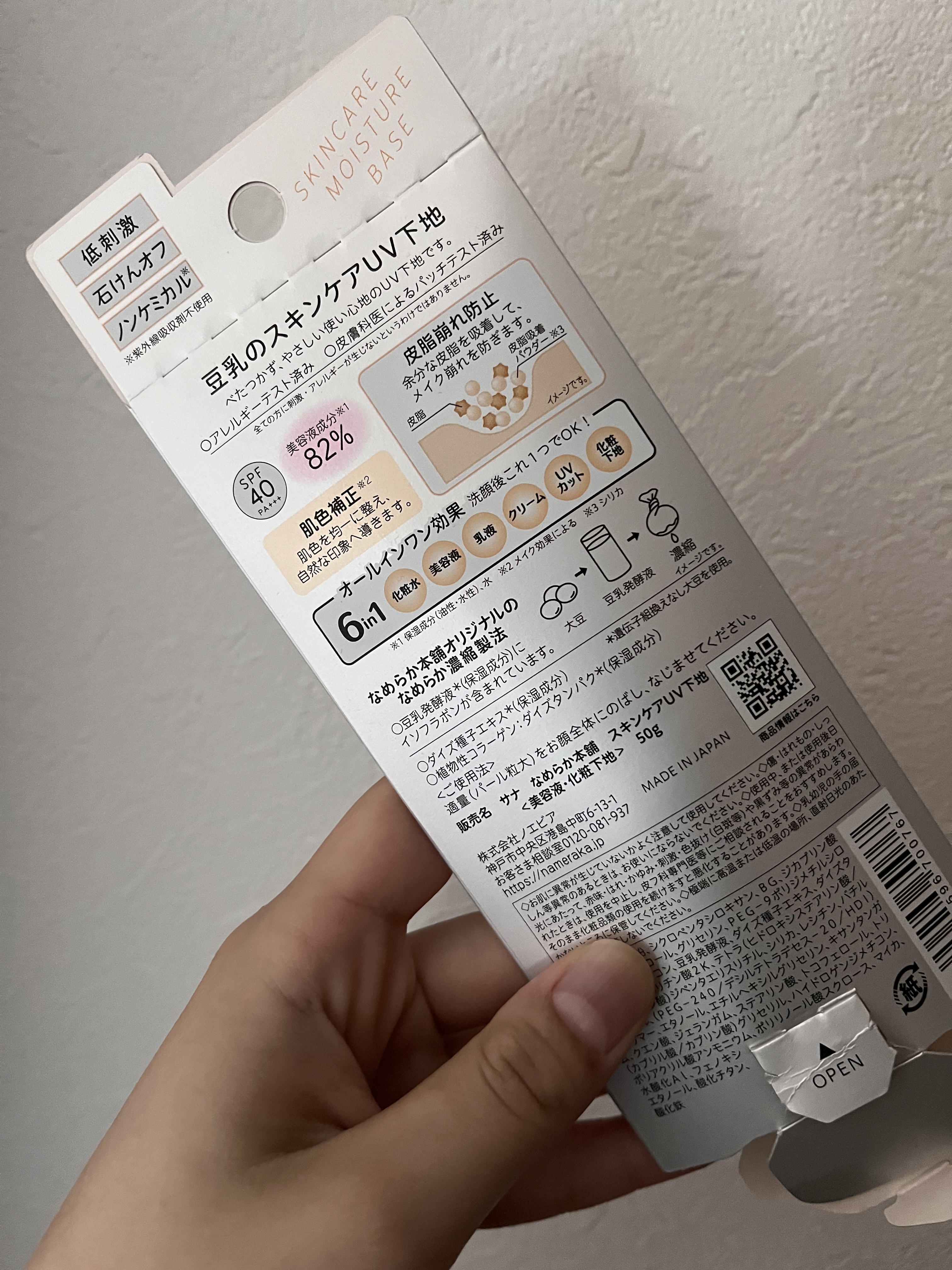 - <スキンケアUV下地> 豆乳のスキンケアUV下地。低刺激&ノンケミカル(紫外線吸収剤不使用)。肌色補正(メイク効果による)&皮脂崩れ防止。化粧水・美容液・乳液・クリーム・UVカット・化粧下地の1本6役。SPF40・PA+++。
