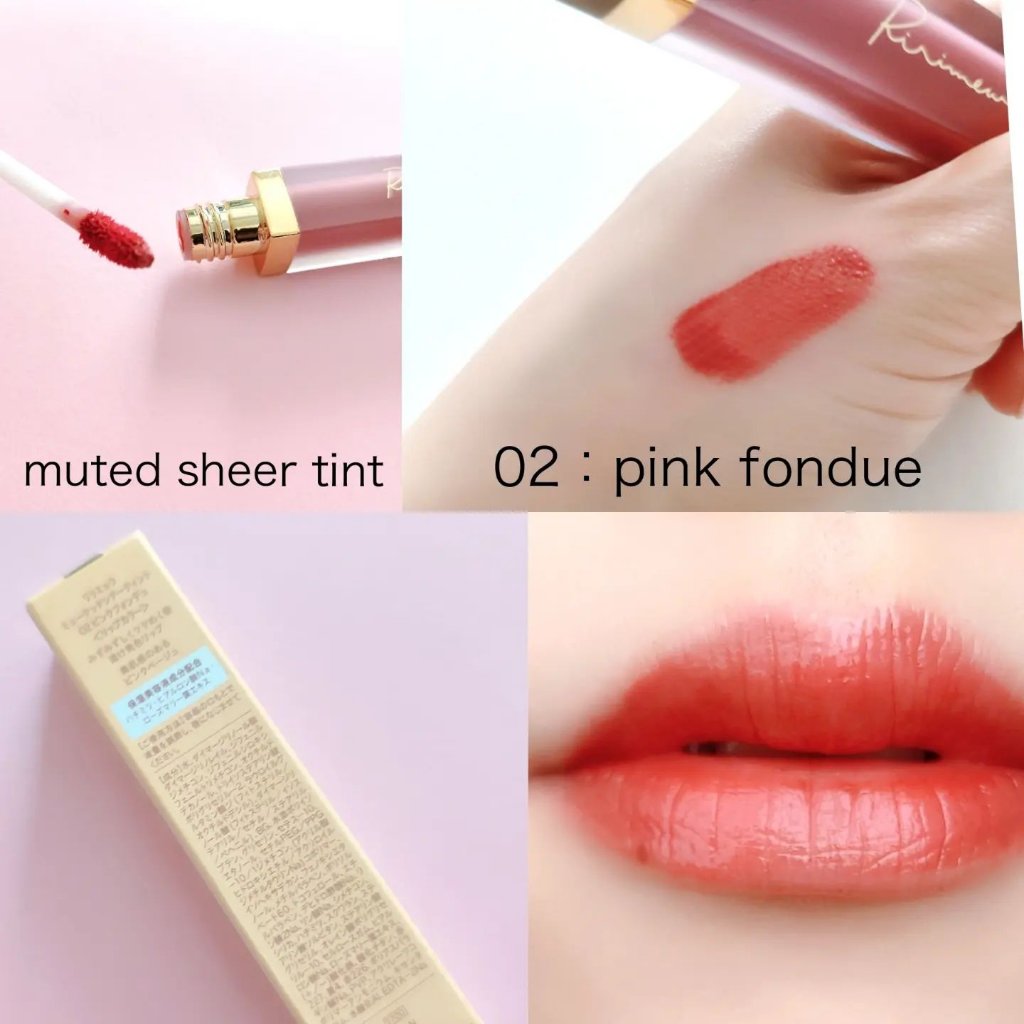 Ririmewミューテッドシアーティント02ピンクフォンデュ職場で一緒だった学生バイトさんが辞める時にプレゼントしてくれました😭🩷リリミュウ持ってなかったので嬉しい!!ブルベカラーを選んでくれて、肌馴染み良いのに発色は良くて良い色💄公式にはピ...