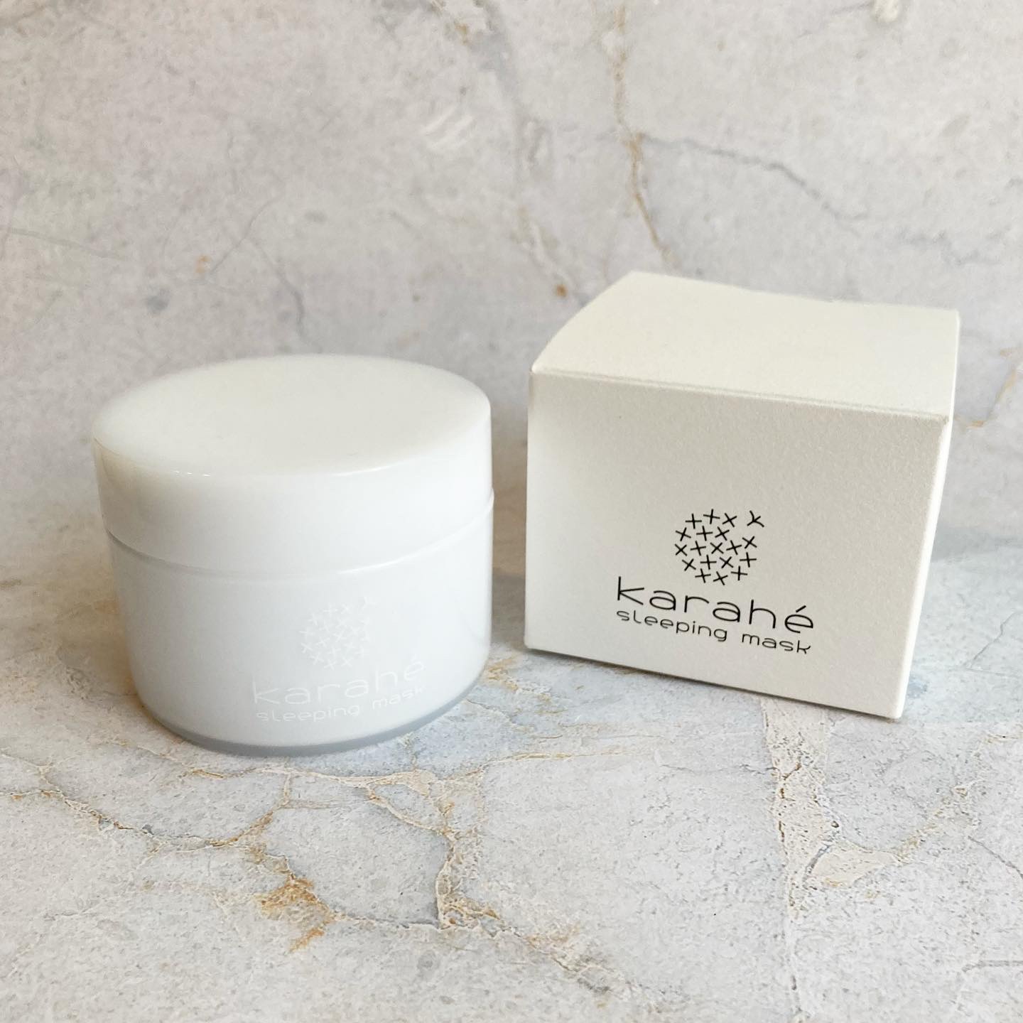 思わず深呼吸したくなるような ゼラニウムの香りがたまらない テクスチャーはぷるんとしていて みずみずしくてベタつかないので 快適に使えるよ( •̤ᴗ•̤ )♡ 5つの無添加で、パラベン・アルコール ・合成香料・合成着色料・鉱物油は不使用。 寝る前のうるおいケアに karahé Sleeping Maskを導入したら いい夢が見られそうな予感 (。•́ωก̀。).。oO