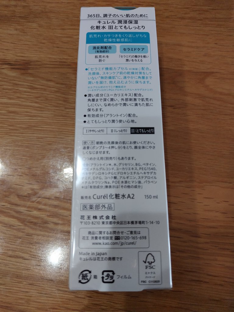 商品詳細情報キュレル 潤浸保湿 化粧水 III とてもしっとり