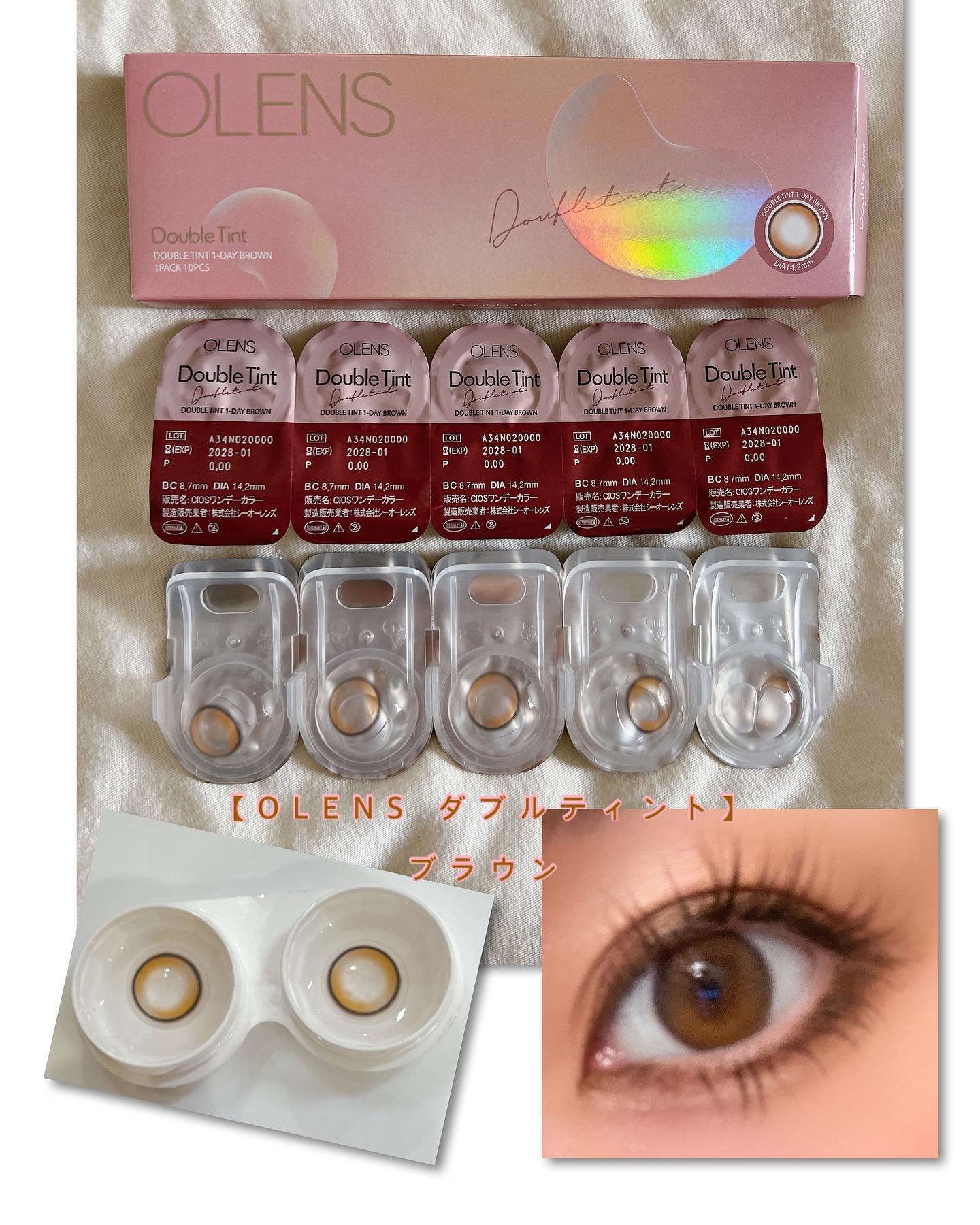 - ■OLENS Double Tint(オーレンズダブルティント) 韓国カラコン業界の話題のブランド『OLENS(オーレンズ)』の日本正式承認商品シリーズ。世界中から注目を浴びるグループ「NewJeans (ニュージーンズ)」がイメージモデル。トレンドのハイライトカラーがダブルになっているので、装用中レンズが回転しても違和感を感じにくく使用できる最新の水光カラコン。ハイライトカラーが瞳に立体感とうるツヤ感を演出してくれます! ■使い方 コンタクトレンズは高度管理医療機器です。必ず眼科医の処方に従って購入してください。 ■使用上の留意事項 コンタクトレンズは高度管理医療機器です。眼科医の指導に従い装用期間を厳守し、正しくお使いください。眼の定期検査を必ず受けてください。添付文書を必ず読み、取扱方法、装用時間を守って正しくお使いください。少しでも異常を感じたら、直ちに眼科医の検査を受けてください。