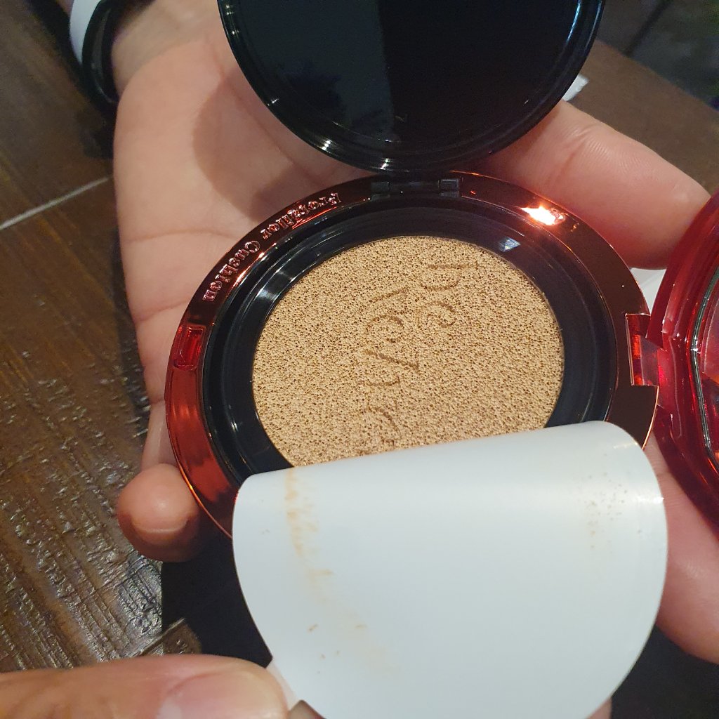 ハーフマットな仕上がりなので、アラフィフですが艶過ぎる不自然さなく、質感は自然な仕上がりです💕 基礎スキンケアでしっかり保湿してから塗ると、さらに密着感のあるプラス仕上がりです😌 ピンクトーンがプラスされたカラー感で、顔色を明るく(春っぽく)カバー後は上質の肌が演出できます🎵 毛穴カバー力もしっかりめです。 肌へしっかり付いて密着力はとても高いですので、化粧持ちがたいへん良いです。 他のクッションでしたら化粧直しするタイミングでも、まだまだ大丈夫です。(5時間くらいは余裕で持ちます)。 有名ブランドの製品より、相当いいなと感じました😊